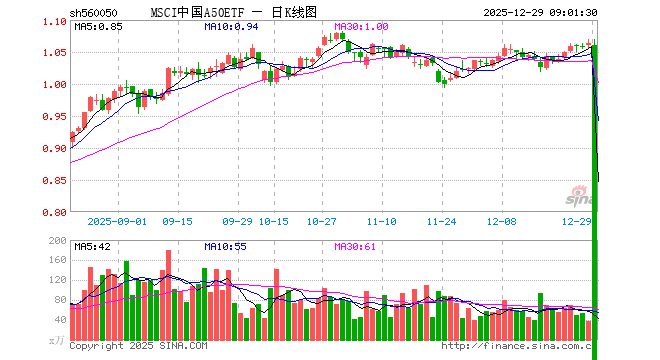 12月26日,MSCI中国A50ETF(560050)涨0.47%,成交额4015.12万元。当日份额减少250.00万份,最新份额为38.60亿份,近20个交易日份额减少5250.00万份。最新资产净值计算值为41.06亿元。