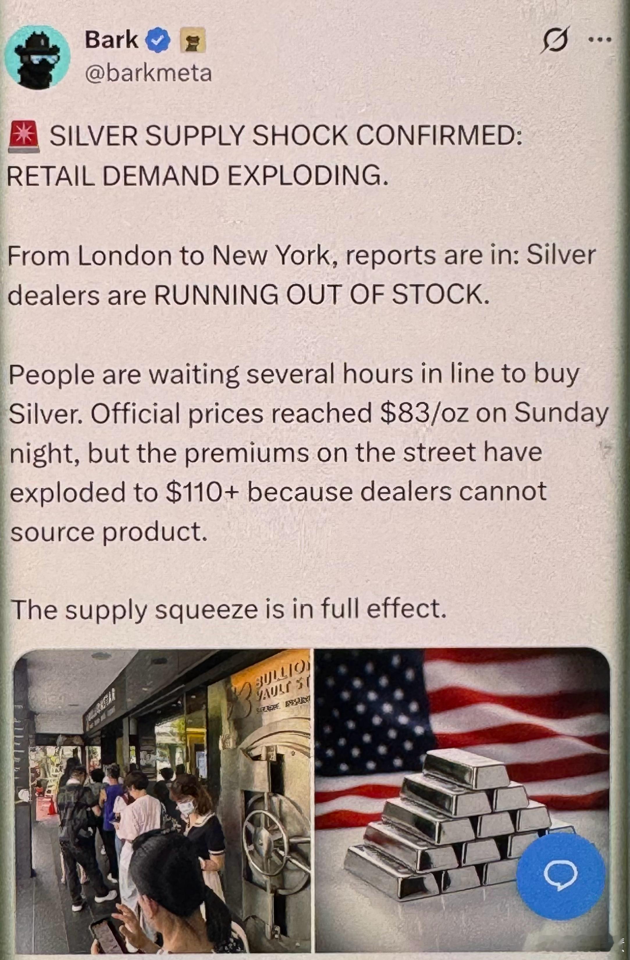 83美元官方价!110美元市场价!溢价暴涨30%!伦敦纽约白银库存清零!排队数小时抢购!供应紧缩全面爆发!白银行情彻底炸了!疯狂的白银基金