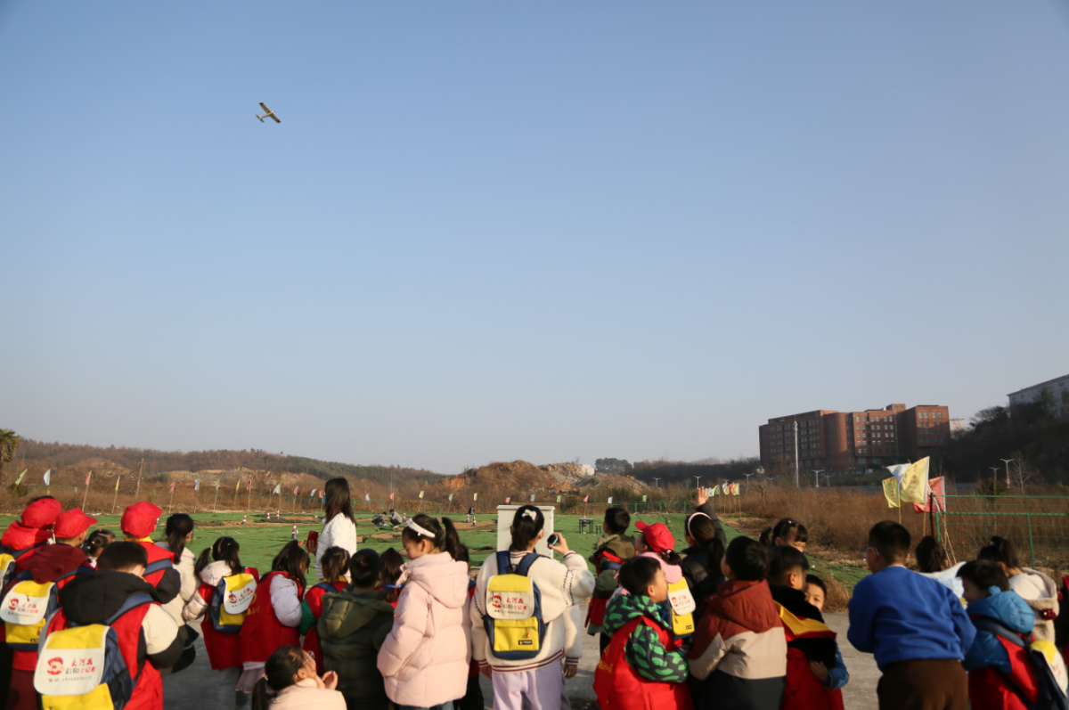 最令人期待的无人机及航模表演环节,瞬间将现场氛围推向高潮。科创中心的专业飞手操控设备登场,伴随着阵阵惊呼,一架架无人机和航模直冲云霄。FPV花式飞行表演中,无人机如同灵活的“空中精灵”,在空中完成翻滚、盘旋、冲刺等一系列高难度动作,飞行轨迹变幻莫测;航模则舒展机翼,平稳滑翔,尽显优雅姿态。小记者们纷纷踮起脚尖,目光紧紧追随着空中的身影,有的忍不住欢呼鼓掌,有的拿出相机记录下这精彩瞬间。当大型专业航拍无人机缓缓升空进行试飞、试拍时,全场更是沸腾起来,小记者们仰着脑袋,好奇地讨论着“它能飞多高呀”“拍出来的画面是什么样的”。
