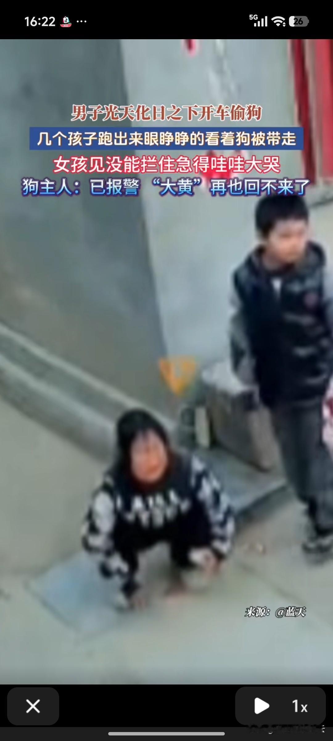 男子大白天的偷狗,他动作熟练,抱起狗就扔进车里。几个孩子听到狗叫声后赶紧跑出来,可还是晚了一步,明明看到狗了,还是没拦住偷狗人。 小女孩看到“大黄”被偷了,急得坐在地上大哭。这个偷狗的一看就是专业的,有人下手偷狗,有人开车等着,配合的天衣无缝。 狗主人说,虽然已经报警,但是“大黄”却永远也回不来了。 对于大人来说,可能是一条狗而已,可是在孩子眼里,这是她童年的好朋友。偷狗太可恶了,建议抓住严惩!