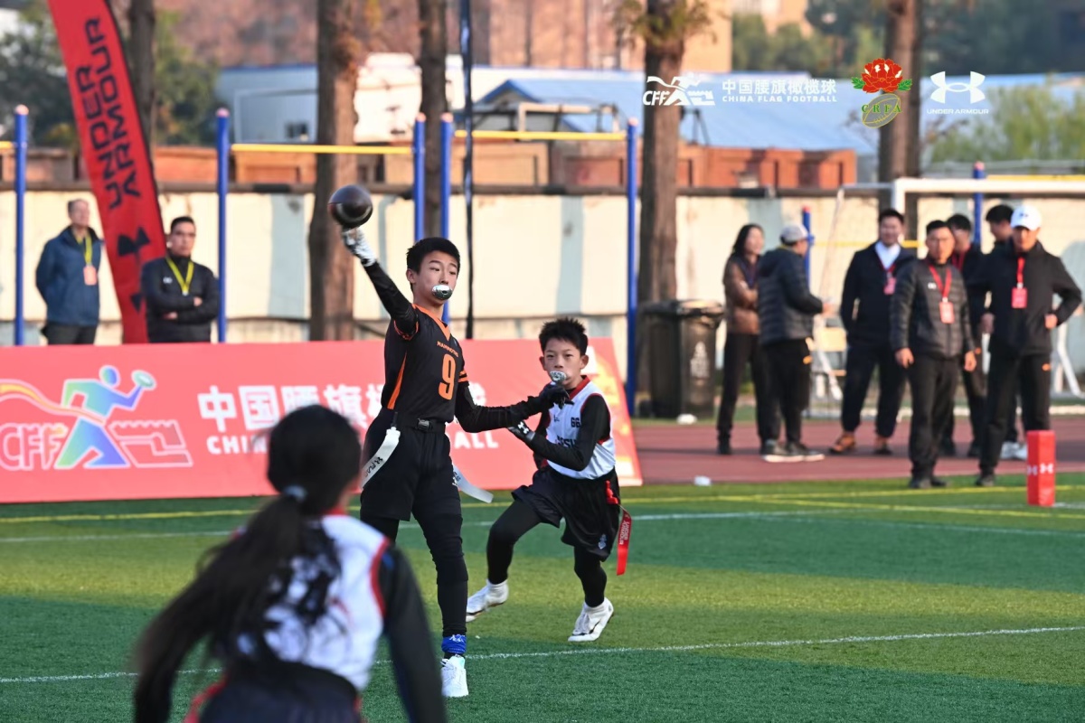 腰旗橄榄球运动兼具力量、速度与智慧,不仅考验运动员的个人竞技水平,更注重团队的协同配合。本次上海站赛事汇聚了来自全国各地的顶尖校园队伍,比赛过程异常激烈。赛场上,猛犸象校队的小将们斗志昂扬、步伐矫健,他们精准传递、巧妙跑位,每一次冲刺都凝聚着汗水,每一次拦截都彰显着决心。面对强劲对手,队员们沉着冷静、默契配合,充分展现了扎实的战术素养和顽强的拼搏精神,用一场场精彩的胜利征服了赛场,也赢得了对手的尊重。