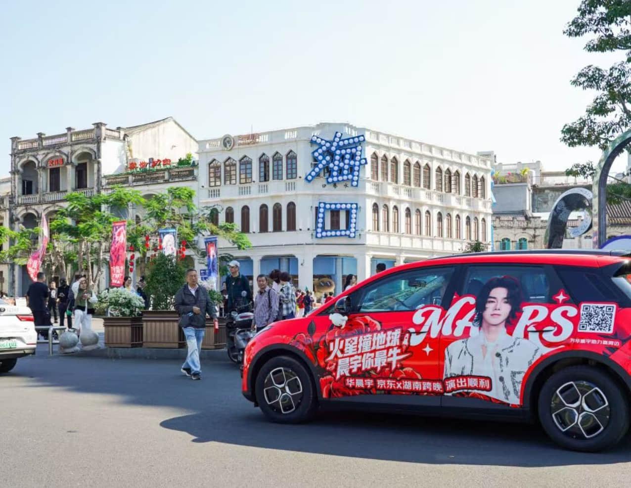 海口街头实拍!花花痛车已经开始巡游了,车上写着"华晨宇 京东x湖南跨晚 演出顺利",还有大红卡车写着2026一路红超级大奖派送中。现场好多人在围观拍照,跨晚氛围已经拉满了!这么用心的活动必须冲,大家赶紧去京东APP搜【跨晚抽大奖】蹲福利,千万份实物大奖和10亿红包可以瓜分,快去试试手气!网页链接 海口偶遇华晨宇痛车 看跨晚上京东抽跨年大奖 京东湖南卫视发布骐骥红穿搭主题