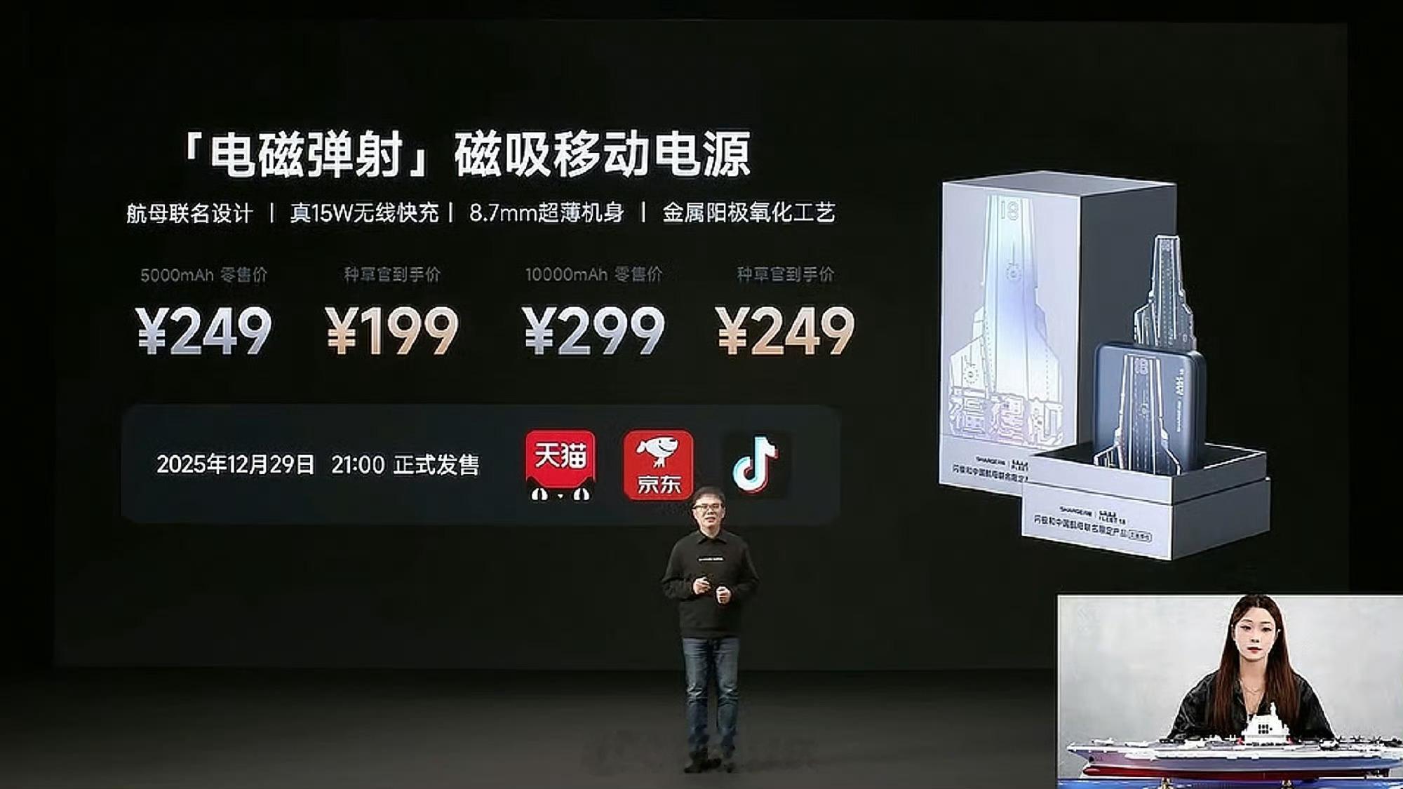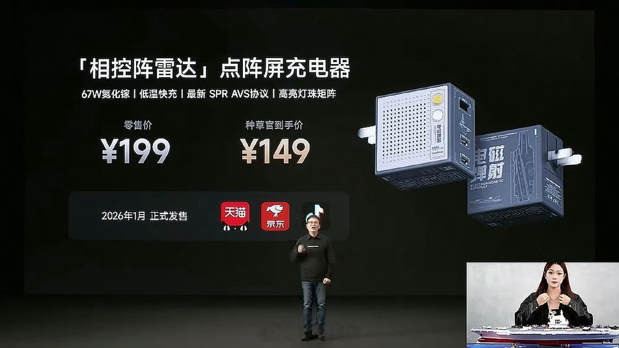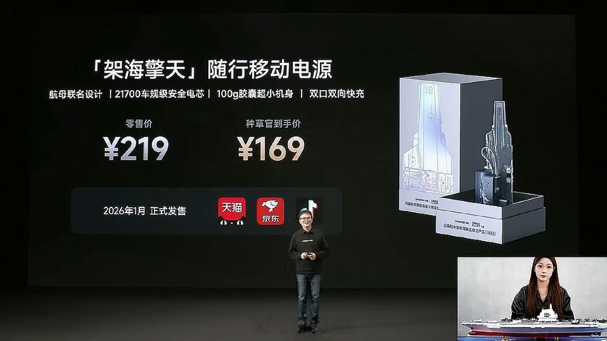 12月29日,闪极新品发布会推出中国航母联名系列、loomos AI眼镜及多款充电存储产品,价格覆盖149元至3999元区间。中国航母联名系列三款产品太有创意了。“电磁弹射”磁吸移动电源有5000mAh(249元)、10000mAh(299元)两种规格,支持有线无线双快充;“架海擎天”随行移动电源重仅100克,22.5W快充加持,售价216元;“相控阵雷达”点阵屏充电器搭载氮化镓技术,67W功率可同时充三台设备,售价149元。智能穿戴端,两款loomos AI眼镜惊艳登场。L1 AI拍摄眼镜配备1200万像素摄像头,支持全天候主动AI录制,258mAh可换电池搭配换电仓,预约价2999元起,A1老用户享1000元补贴。S1 AI显示眼镜整机仅29g,前框重量不足10g,续航长达15小时,预计3999元,2026年第三季度上市。充电存储产品同步上新:Disk Pro多合一移动硬盘1599元起售;170W移动超充站售价449元;飓风3磁吸移动电源、随行Pro移动电源分别定价399元、239元,满足多元快充需求。