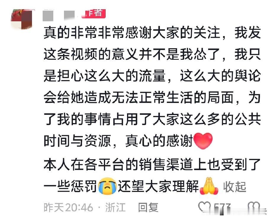 厂家发视频说和苏女士已经和解了,苏女士私下找到他们,说这件事对她的生活造成了很大的影响,很多网友发私信谴责她。厂家说,为了不影响苏女士的正常生活,他们这件事就到此结束,希望大家不要再发酵舆论了。 感觉厂家也有些无奈,但是事情闹到这个地步,再闹下去就不好收场了。大家都是两败俱伤,苏女士被网暴,生活造成困扰。厂家也说他被平台惩罚了,我想如果他再不平息舆论,他的厂子很可能会关停。 对于这件事,你怎么看呢?