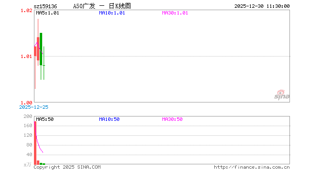 12月30日,截止午间收盘,A50ETF广发(159136)涨0.00%,报1.008元,成交额222.71万元。A50ETF广发(159136)重仓股方面,宁德时代截止午盘跌0.44%,贵州茅台跌0.76%,中国平安跌0.76%,中际旭创涨1.14%,招商银行涨0.60%,紫金矿业涨1.59%,美的集团涨0.26%,长江电力跌0.65%,立讯精密跌0.65%,中信证券跌0.48%。
