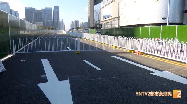 由于巫家坝片区飞虎大道与春城路的下穿隧道工程尚未完工,这条接驳保通路采取临时性和永久性相结合的方式,先实现双向4车道保通,实现飞虎大道与春城路连接通行,春城路能右转进入飞虎大道,飞虎大道能左转进入春城路。