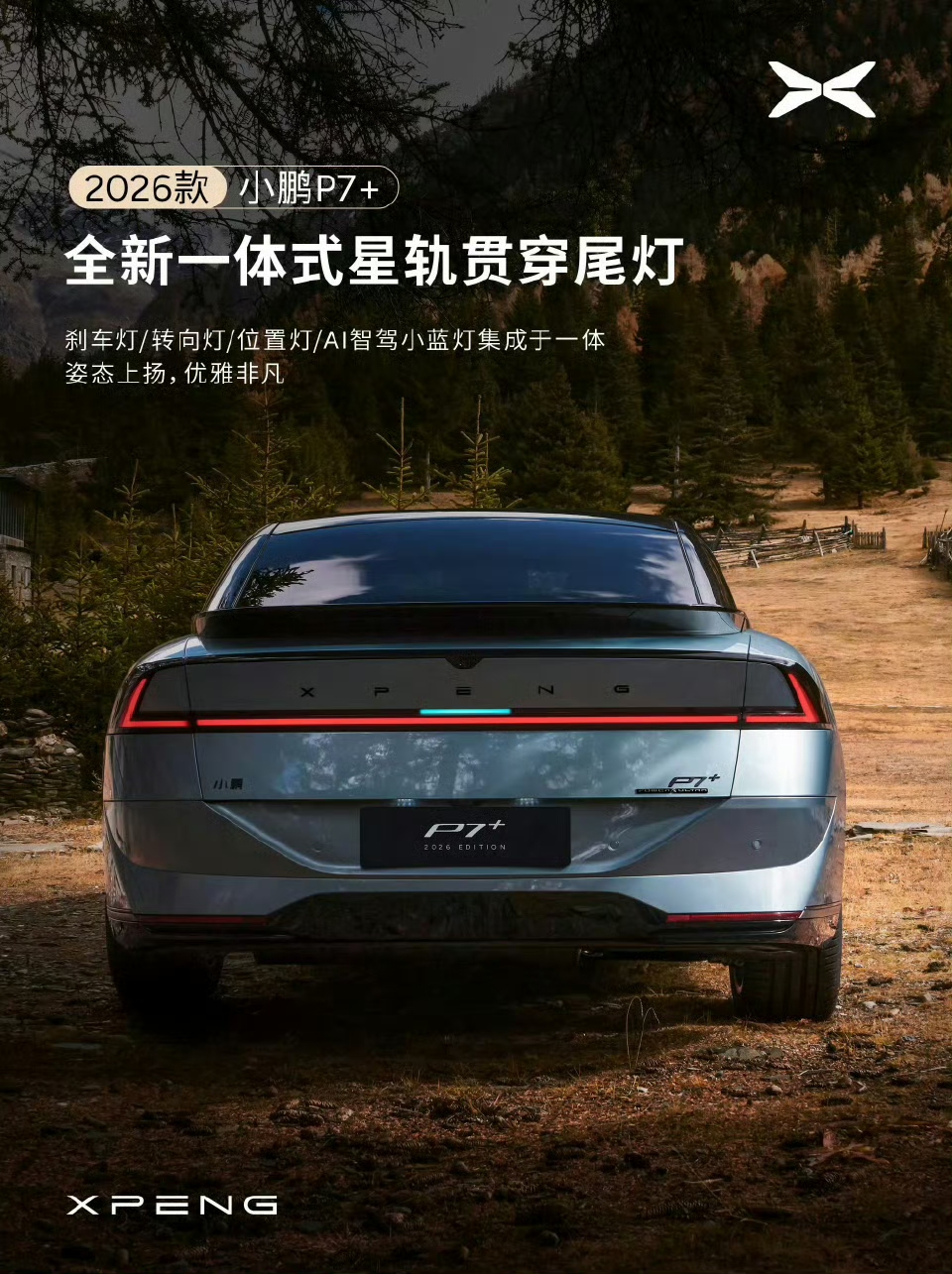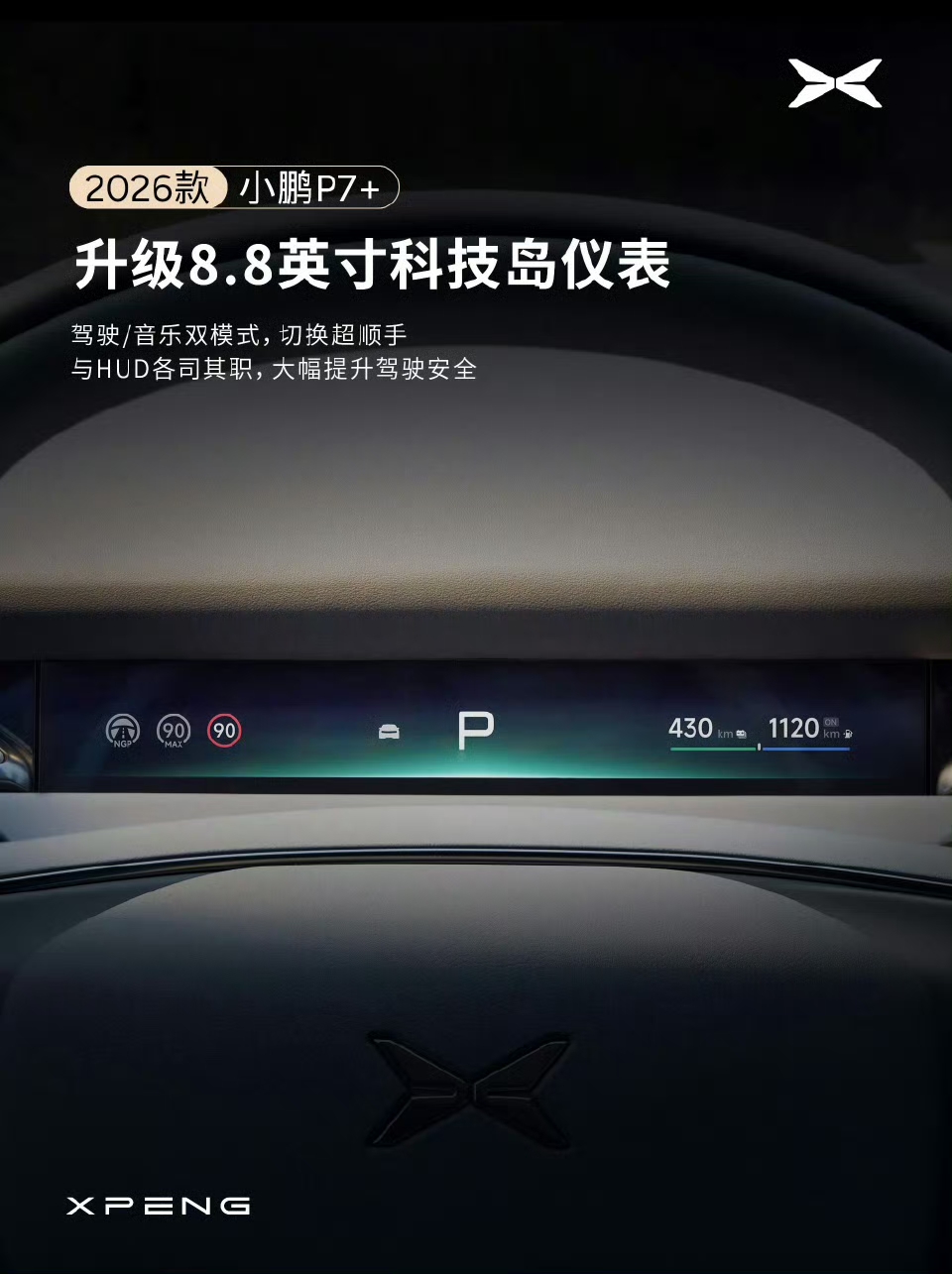 小鹏新车节奏很快,新款P7+来了~ 除了纯电版还提供增程版,增程版430公里纯电续航,很牛逼 外观进行调整,全新前后灯组,内饰也优化了,仪表换为了这种窄条幅式