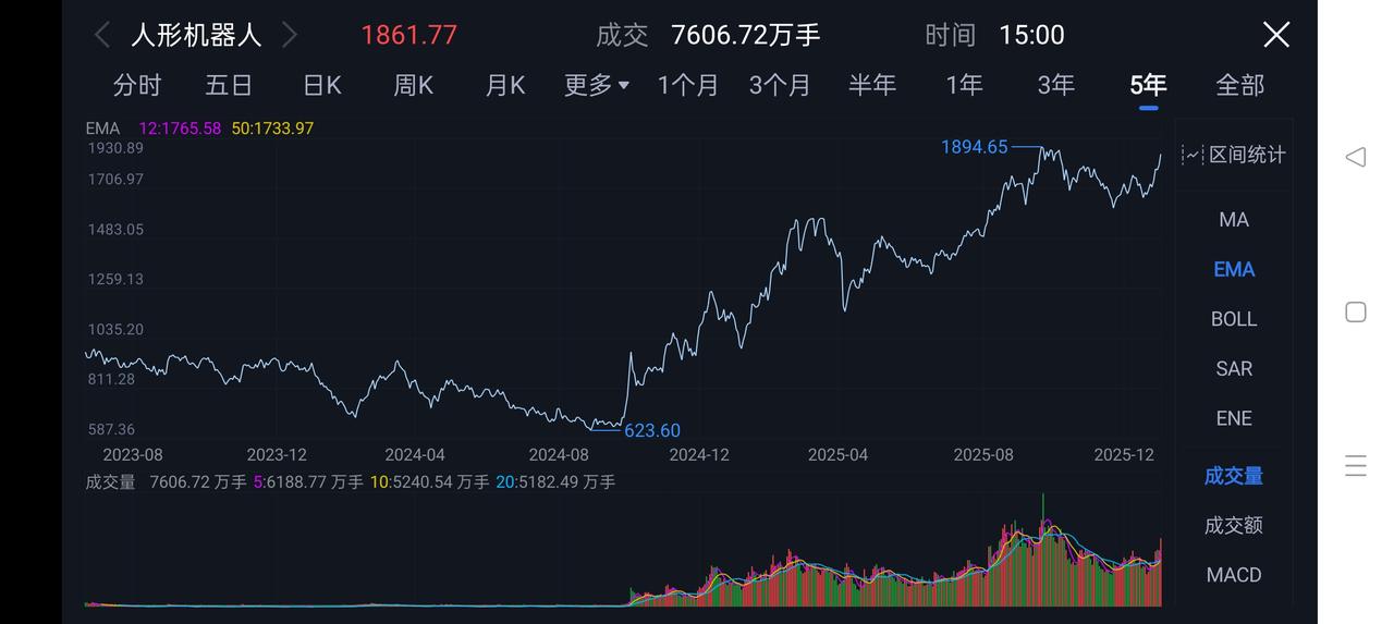 明天股市小跌收尾告别2025年。 人形机器人按照三浪计算的话大概还有34%左右涨幅。