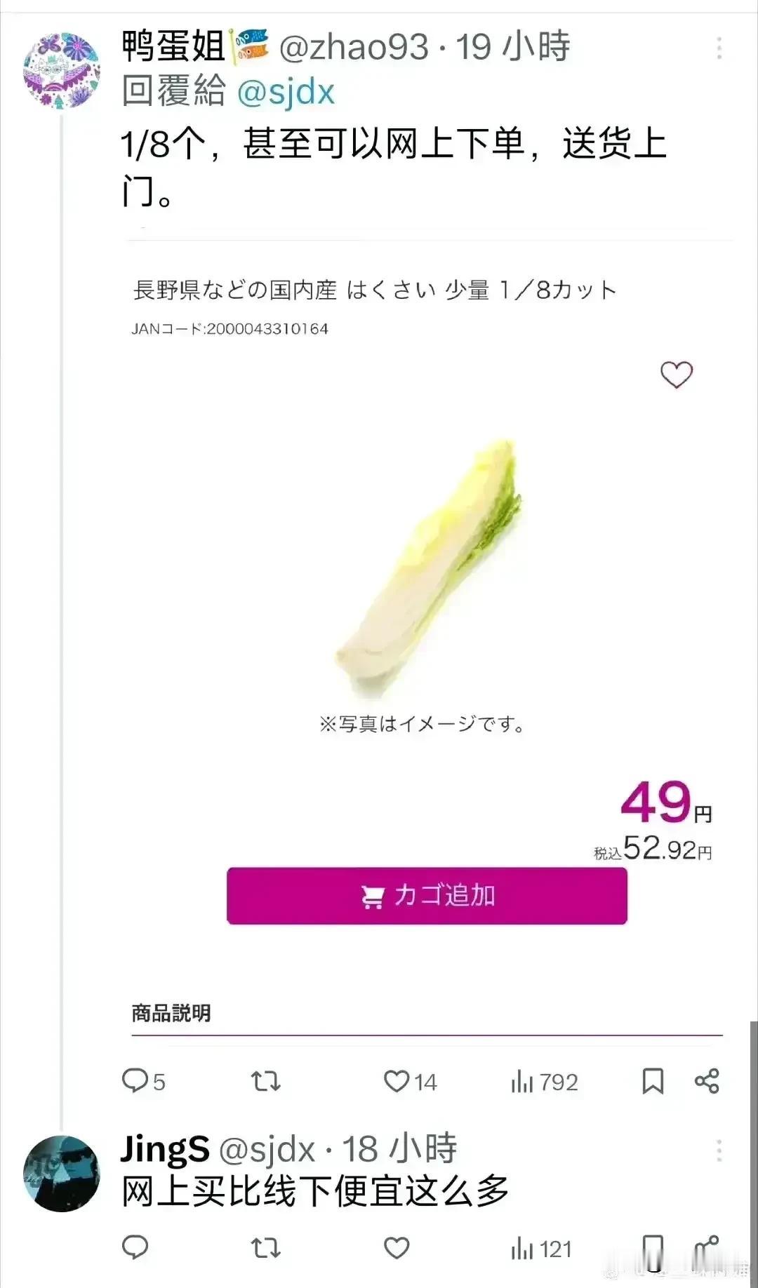 日本人是真能忍,基本生活物资贵到要缩小自己的饭量,已经堪比猫胃了,看看日本超市买菜的分量,这点西蓝花,都不够我一口,而且后面那个茎还那么大,一般我都不吃这个茎,只吃前面的菜花,而且这点西蓝花还卖100日元,加税后是108日元,折合5块钱人民币,现在日本的超市卖菜都是这种分量,连定居国外回去日本的日本人都感叹日本人都快营养不良了,一天就吃这点东西,但是还是经常看到有日本人笑话我们这边饭量大,美化饭量小是优雅精致,不得不服这些日本人!