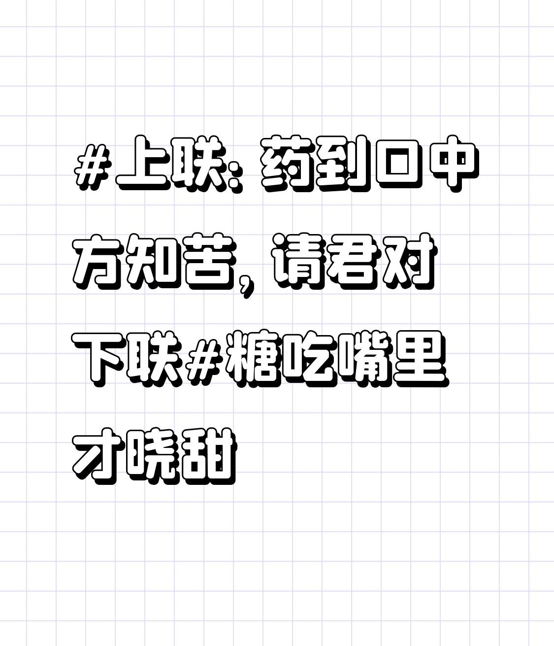 上联:药到口中方知苦,请君对下联糖吃嘴里才晓甜