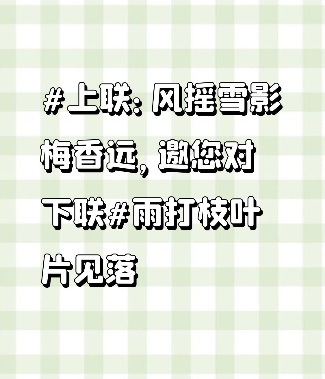 上联:风摇雪影梅香远,邀您对下联雨打枝叶片见落