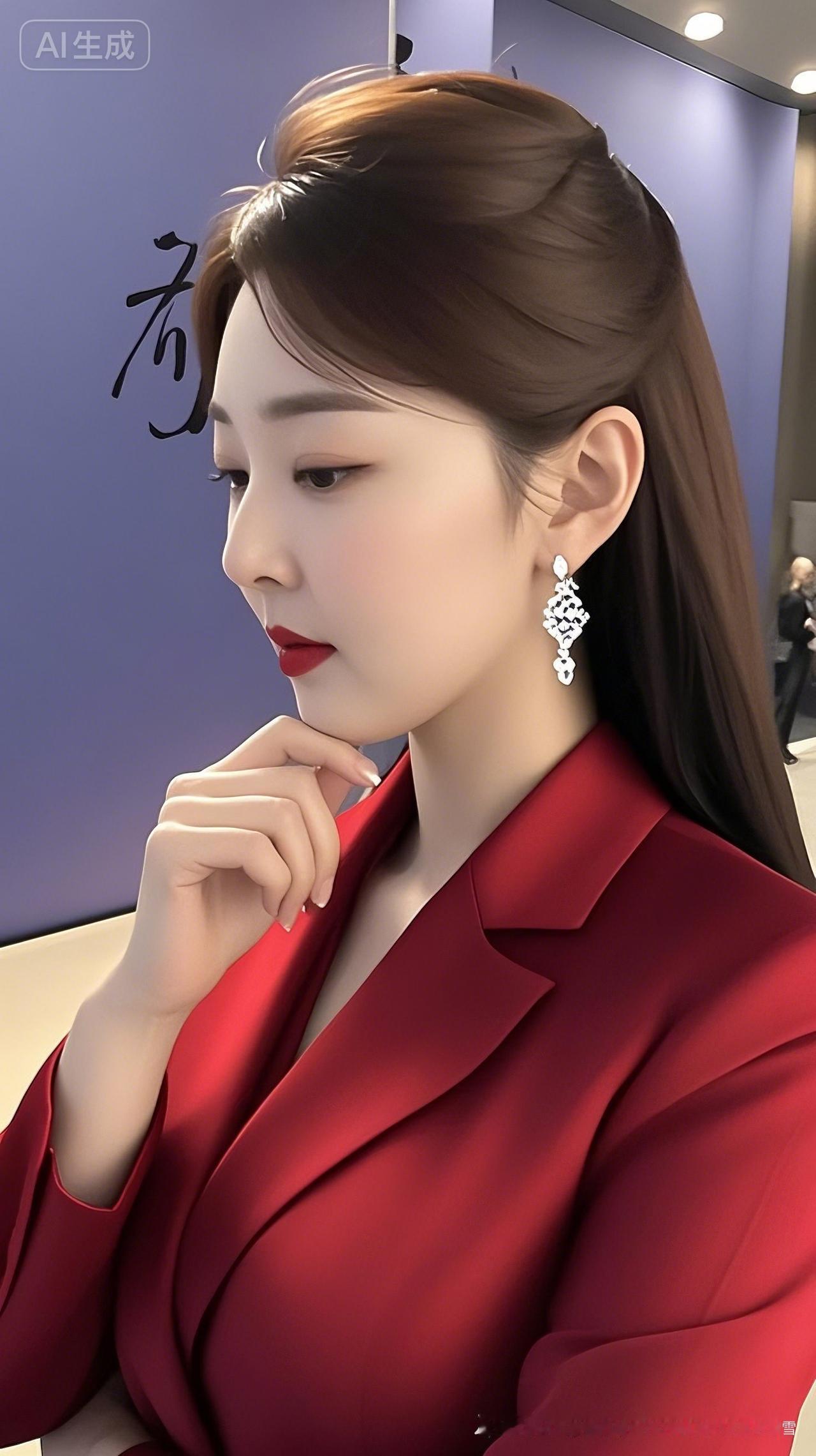 优雅红衣,精致妆容,自信微笑,职场女性魅力无限!