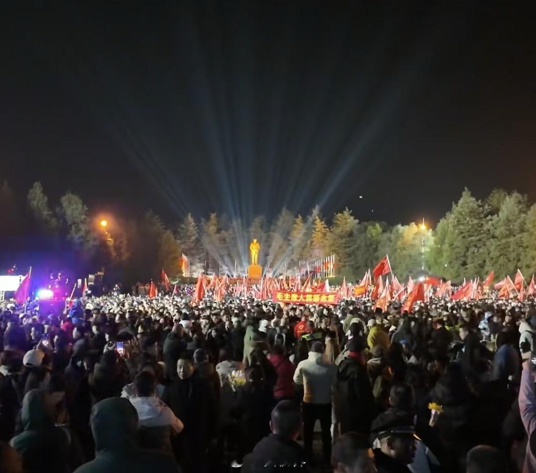 12月25日深夜,韶山,几十万人自发前来等候教员诞辰日,零事故、零负面。有人用摄像机一扫,看看这灯光下的面孔,多么祥和多么灿烂!