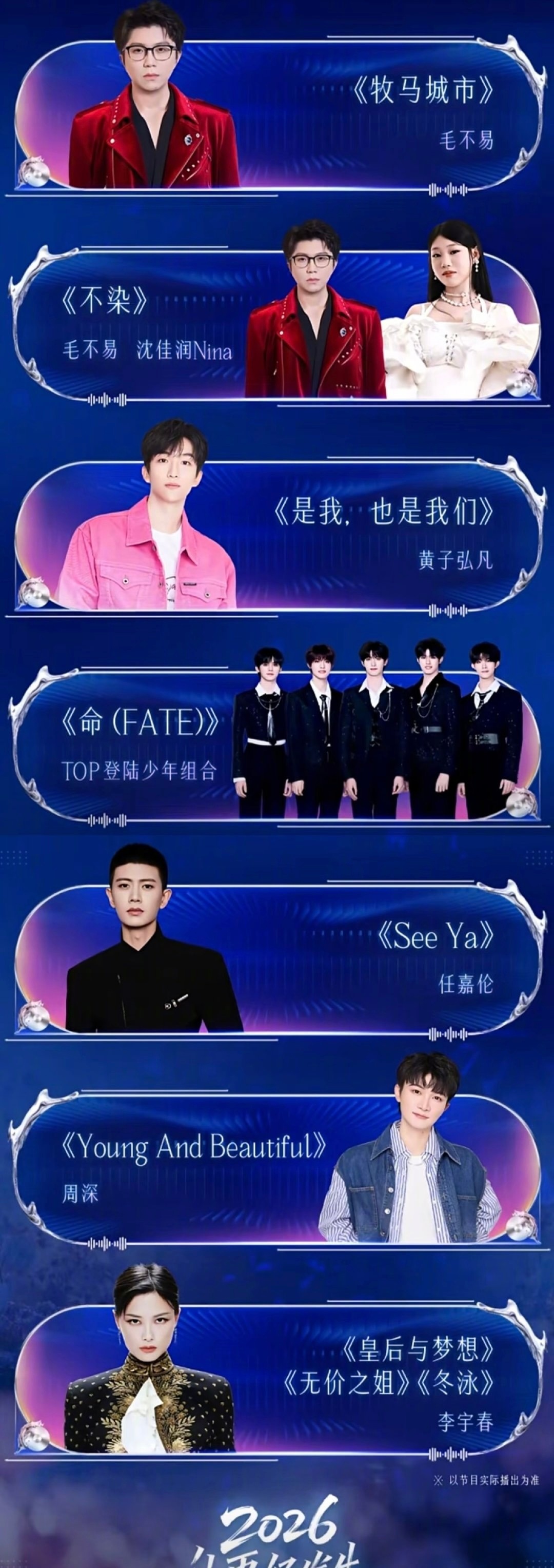 “与辉同行”今晚跨年乐享会节目单新鲜出炉了,一共26个节目,宇辉不仅要唱大家耳熟
