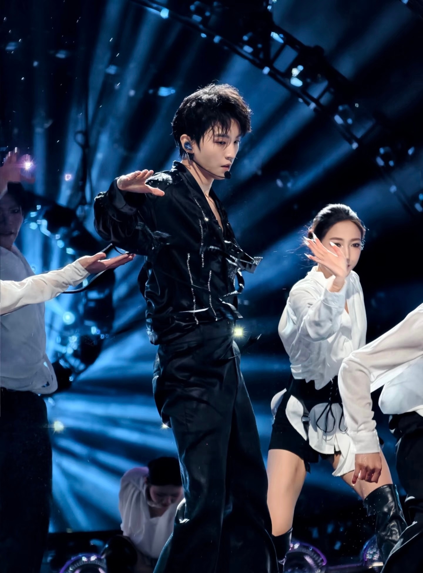 王俊凯|江苏卫视跨年开场大秀,黑色系穿搭配红底鞋,化身舞台的掌控王者,此男为神已