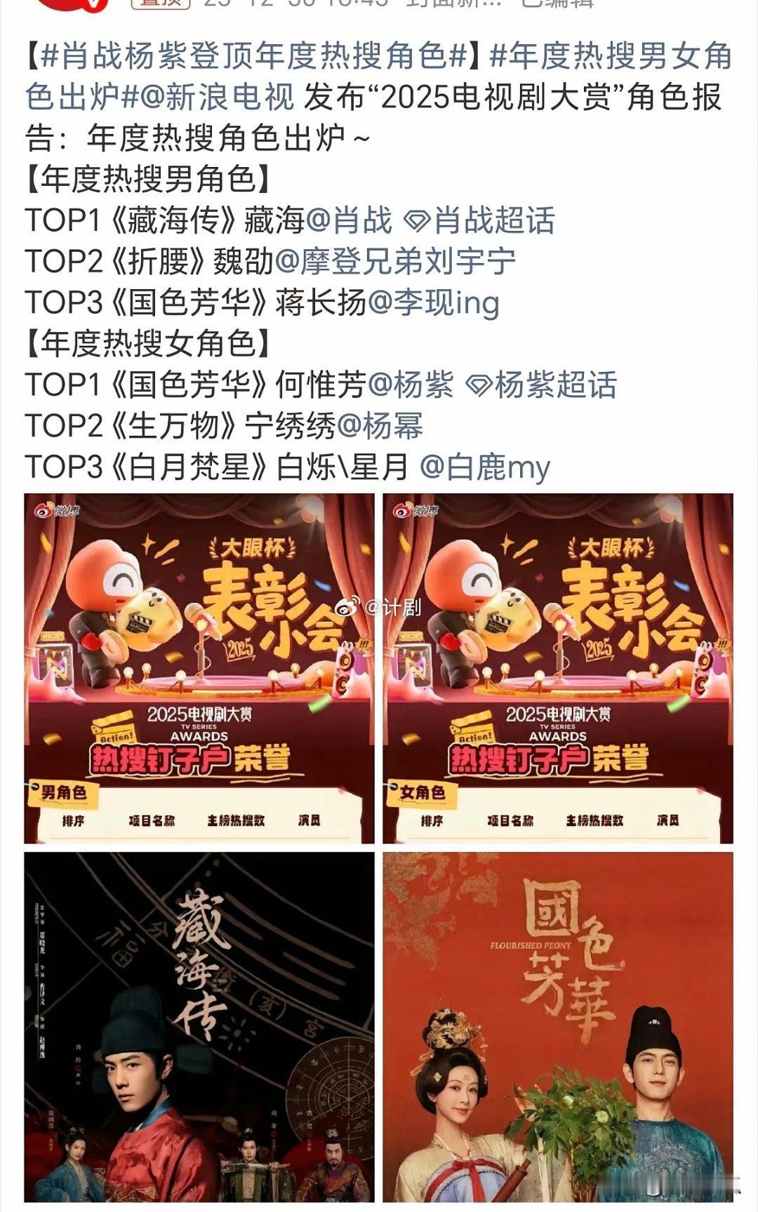 余生夫妇再次火爆,肖战杨紫同时登上年度热搜角色排行榜第一,真的是太厉害了!肖战以一部《藏海传》稳居男星的热度第一,而杨紫则是以《国色芳华》力压杨幂和白鹿,成为女星里面的第一!祝贺他们两个人,真的是太棒了!还有谁没看过他们两个人的戏吗?