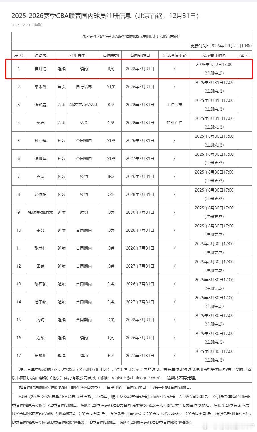 曾凡博完成注册!今晚出战京粤大战 近日CBA官方资料显示,曾凡博已经成功在北京队注册了,也就是说他随时可以出场比赛了,据悉今晚对战广东队的比赛他将会出场。 曾凡博作为北京队上赛季的主力前锋,身高2.07,可以打大前锋和小前锋两个位置,他的特点是三分球精准和协防封盖能力出色,很有特点的一个锋线3D球员,目前广东队八连胜,北京队7胜1负,两队都是今年的夺冠大热门,这场比赛也是倍受期待,可以说输赢五五开,就看临场发挥。