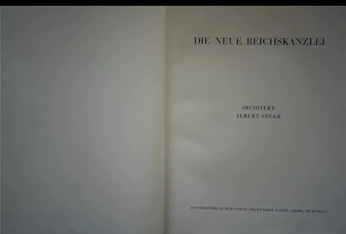 二战书籍 二战书籍‖1940 新帝国总理府图册 精装本(艾尔伯特,施佩尔编著) 德国军工部长施佩尔于1938年1月到1939年1月建造完成了柏林帝国总理府的建造。作为XTL权利的象征,是一个成功的设计。作为一个用于宣传的建筑。豪华的大理石大厅的彩色照片频繁的出现在德国的报纸上。 新扩建的帝国总理府主要用于宣传。高大的建筑照片与文章大量向公众展示。并有专门的图书介绍。针对不同的消费结构。有便宜的平装本的照片集。另一方面有高价豪华的图片集,有建筑的设计图画,和一些高官来访称赞的题词,高档的图片集还有家具与陈设的详细介绍。摄影集 构建灵魂建筑 时间与记忆之墟 摄影画册 二战德国