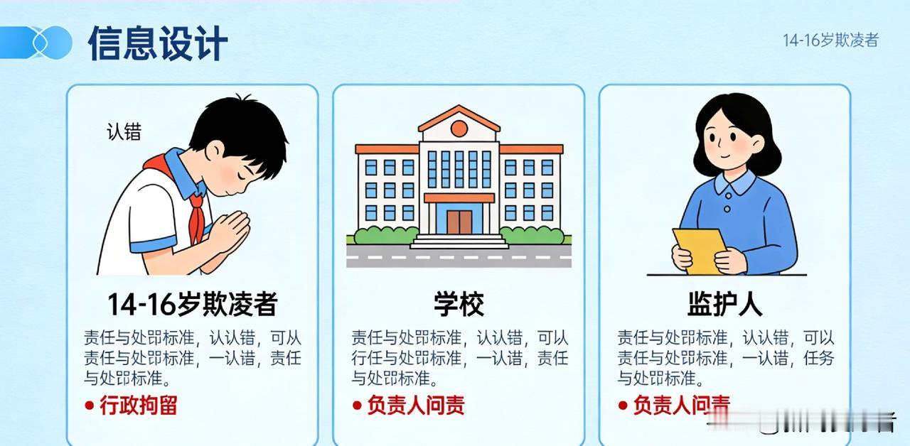 2026元旦起校园欺凌正式立法!14岁以上"小霸王"无豁免权,学校瞒报追责 2026年元旦起,校园欺凌治理迈入法治化新阶段,《未成年人保护法》《预防未成年人犯罪法》配套新规正式落地,彻底终结“批评教育了事”的轻处置时代。新规明确界定校园欺凌的法律边界——辱骂、殴打、孤立排挤、网络霸凌、强迫脱衣等行为均属违法,实施者将根据情节轻重面临层级追责,从治安处罚到刑事责任,无一例外。 此前处于处罚“模糊地带”的14-16岁群体成为规制重点。以往“年龄小”的豁免权被彻底取消,只要欺凌行为造成轻微伤以上后果、多次实施霸凌或胁迫他人参与,该群体将面临行政拘留、责令接受矫治教育等正式处罚,监护人还需承担医疗费、精神损害抚慰金等民事赔偿责任。 同时,学校被赋予“第一责任人”义务,需建立欺凌预警、调查、处置全流程机制:接到欺凌报告后24小时内启动调查,7日内给出处理结果并上报教育部门;若存在瞒报、拖延、“和稀泥”等不作为情况,学校负责人及直接责任人将被问责,情节严重者面临党纪政务处分,甚至影响学校评优评级。 新规的落地,既是对受害者的权益兜底,也是对青少年的法治警示。校园本应是成长净土,唯有以法治划清底线,让欺凌者付出代价、让监管者压实责任、让维权者有章可循,才能从根源上遏制校园暴力,守护每一位学生的安全与尊严。 1. 你觉得校园欺凌立法后,最该加强哪方面的落实(如校园巡查、法治教育、惩戒执行)?欢迎分享见解! 2. 家长该如何教会孩子“不施暴、敢维权”?来评论区交流实用方法~ 校园欺凌立法 2026新规 青少年保护 法治校园 校园安全