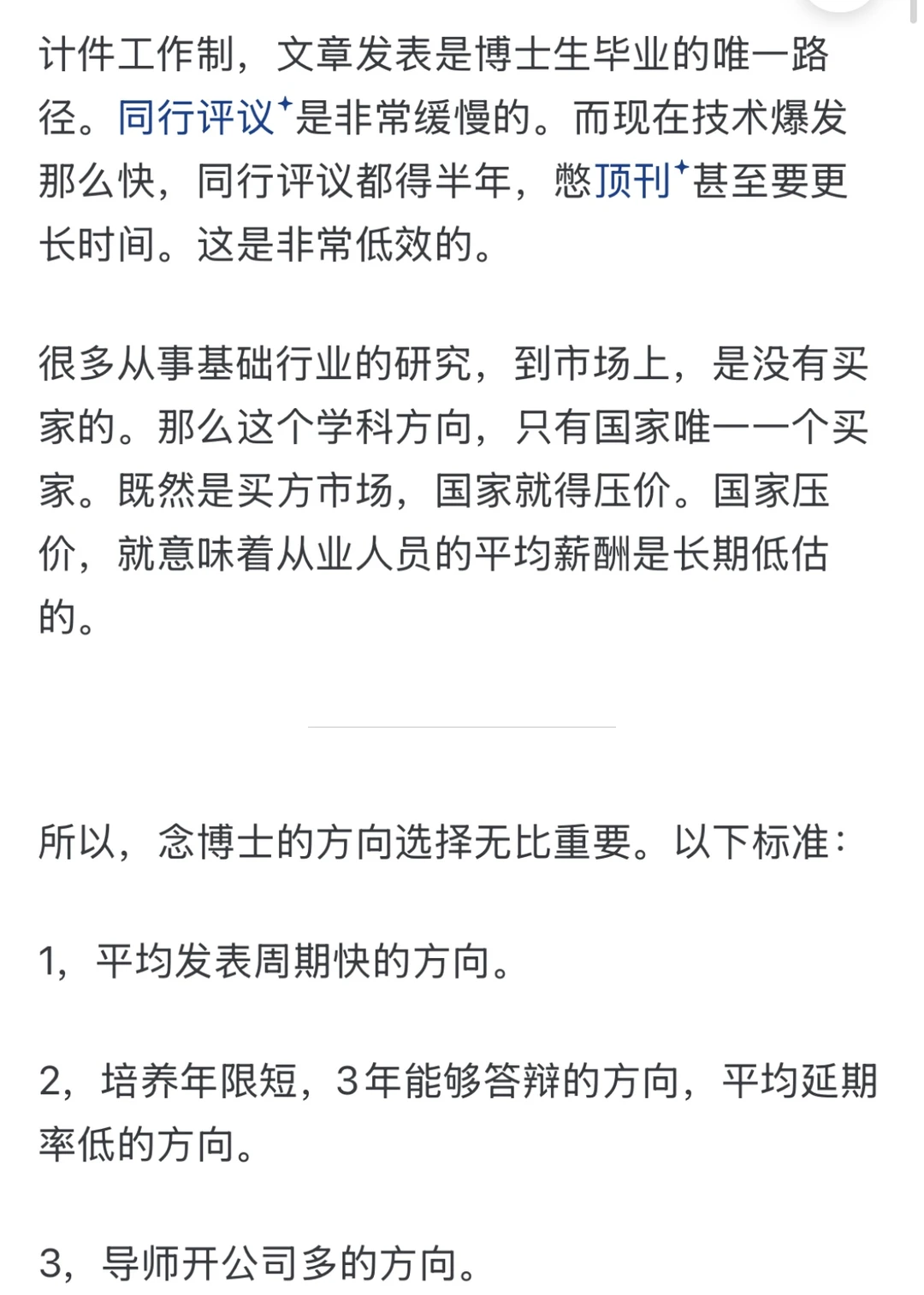 计件工作制,文章发表是博士生毕业的唯一路径。同行评议“是非常缓慢的。而现在技术爆发那么快,同行评议都得半年,憋顶刊*甚至要更长时间。这是非常低效的。