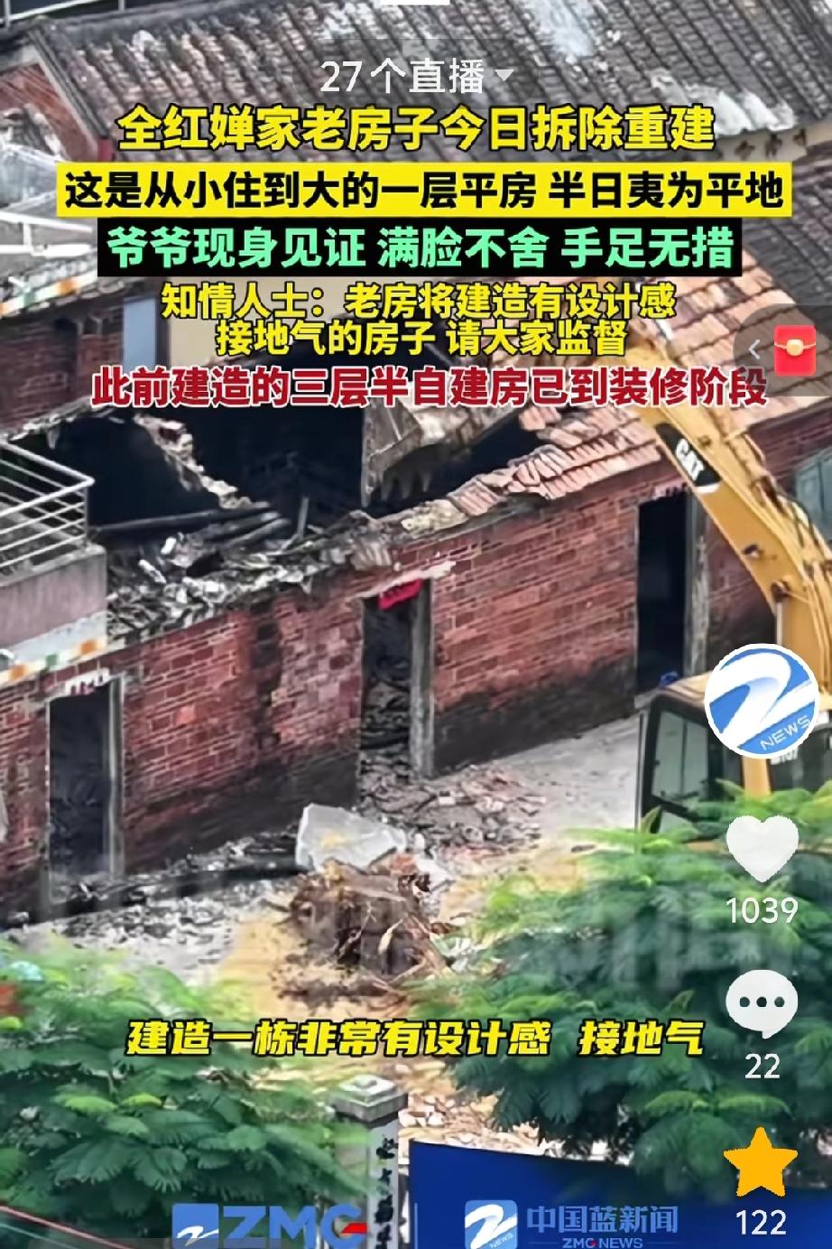 全红婵的爷爷看着拆掉的老房子,满眼不舍。带电梯的三层小楼已经开始装修。老房子也会重建。 全红婵家的老房子拆了。从小住到大的平房。不到半天夷为平地。爷爷站在旁边看着,满脸的不舍。 知情人透露在原来的地方重建老房子。已经做好了规划。修建的低调接地气。 之前建的,三层半的小楼。已经进入装修阶段。新楼房是带电梯的。 就是为了爷爷奶奶上下方便。全红婵家的楼房整整修了半年。全国人民都在监督 质量非常的好。设计的也很大气。房间足够用。以后全红婵回家。就不用担心被窥探隐私。 看到爷爷呆呆的站在大门口。看着拆掉的老房子,满眼不舍。让人感到心酸。 现在全红婵的爸爸妈妈和哥哥靠直播卖货。还开了一个店。生意风生水起,收入很高。 有条件造个好房子。全红婵还月月给妈妈打钱,他们家的日子也越来越好。