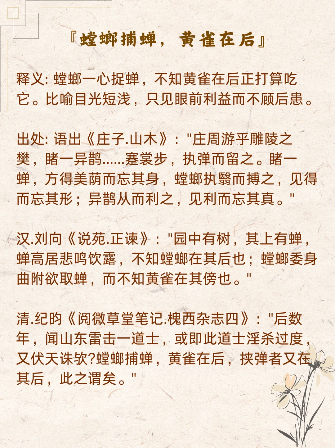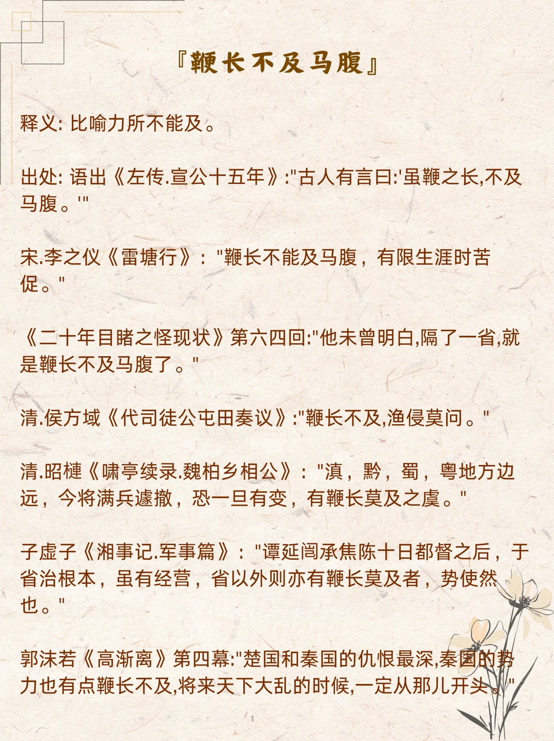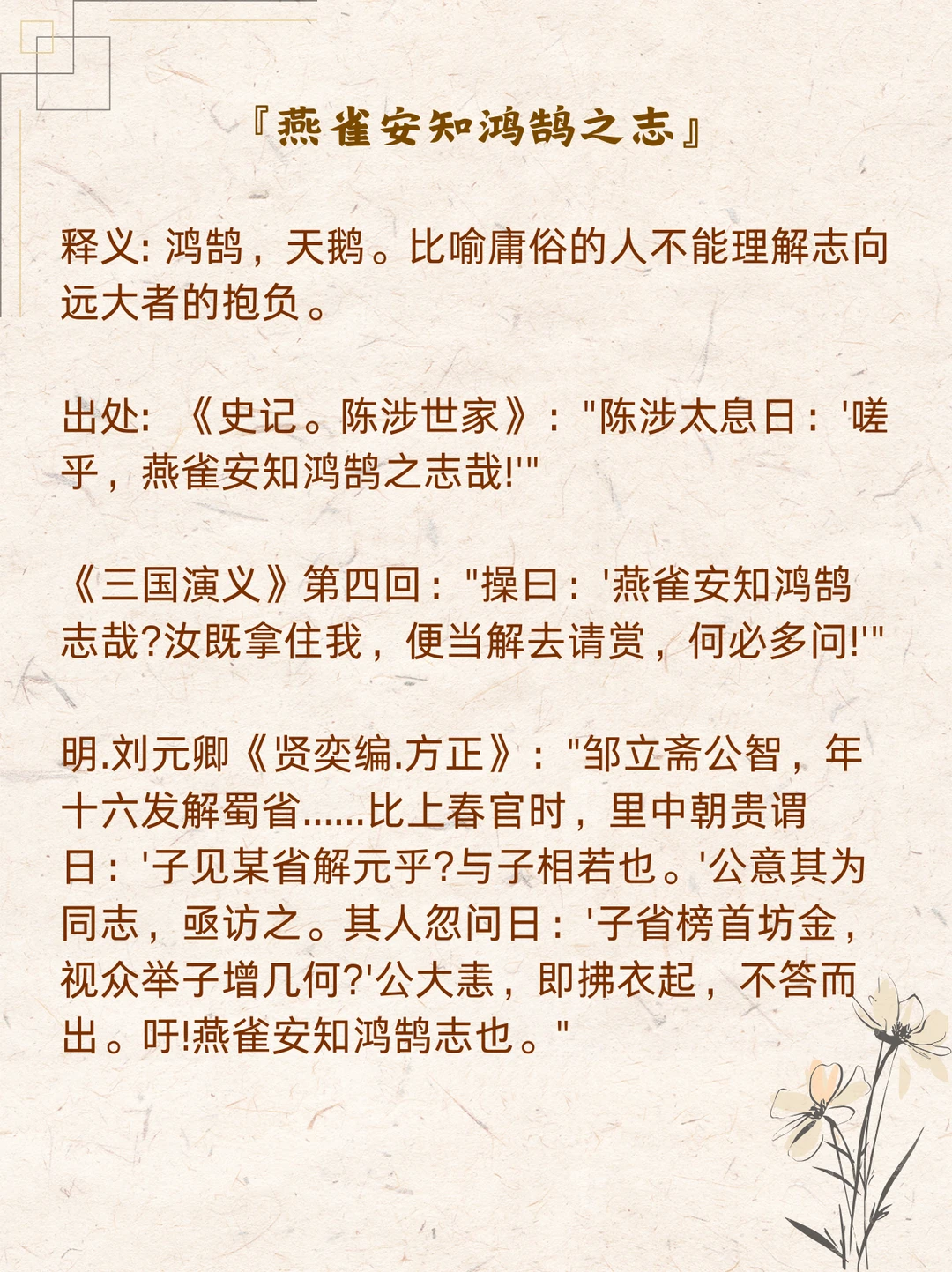 别再认错了~ 那些「不像成语」的成语合集。 何为成语? 众人皆说,成之于语。 它们主要源自古代经典著作、历史故事或人们口头相传的故事。是人们长期以来习用的、简洁精辟的固定词组或短句,是我们几千年来人民智慧的结晶。 常见的成语多为4个字,但也有很多3字、5字甚至7字以上的“异类”。 跟我一起来慢慢盘点这些完全不像成语的成语,积累素材,涨知识啦~
