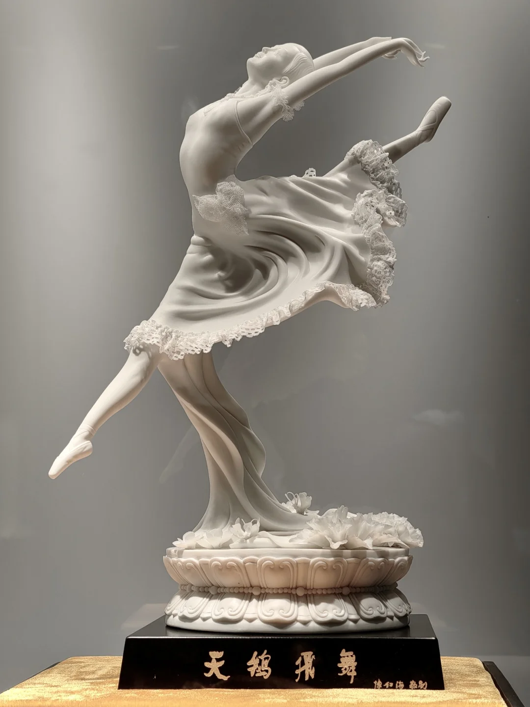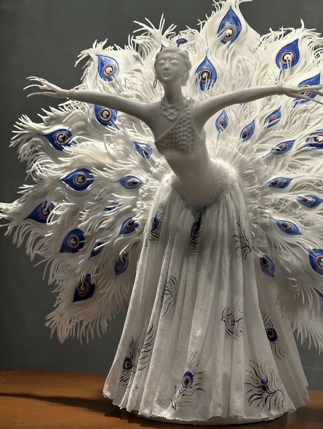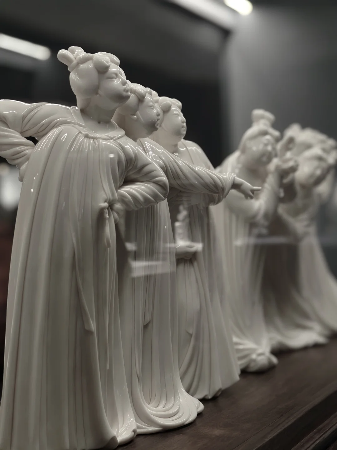 以《神话》中玉漱公主为原型创作,运用“高韧薄胎瓷衣技艺”,瓷衣厚度仅0.2毫米,呈现薄如鲜翼、飘逸如风的效果。太精致,太美啦
