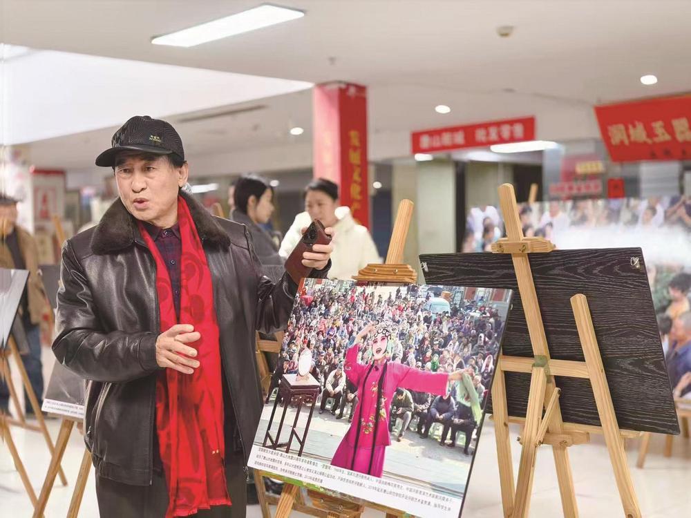 图为成贵民在展览现场向观众讲解拍摄作品的经过。檀淑贵王欢摄