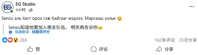 但该家媒体此前发布关于”Senzu将于明日公布下家“的推文是真实的。