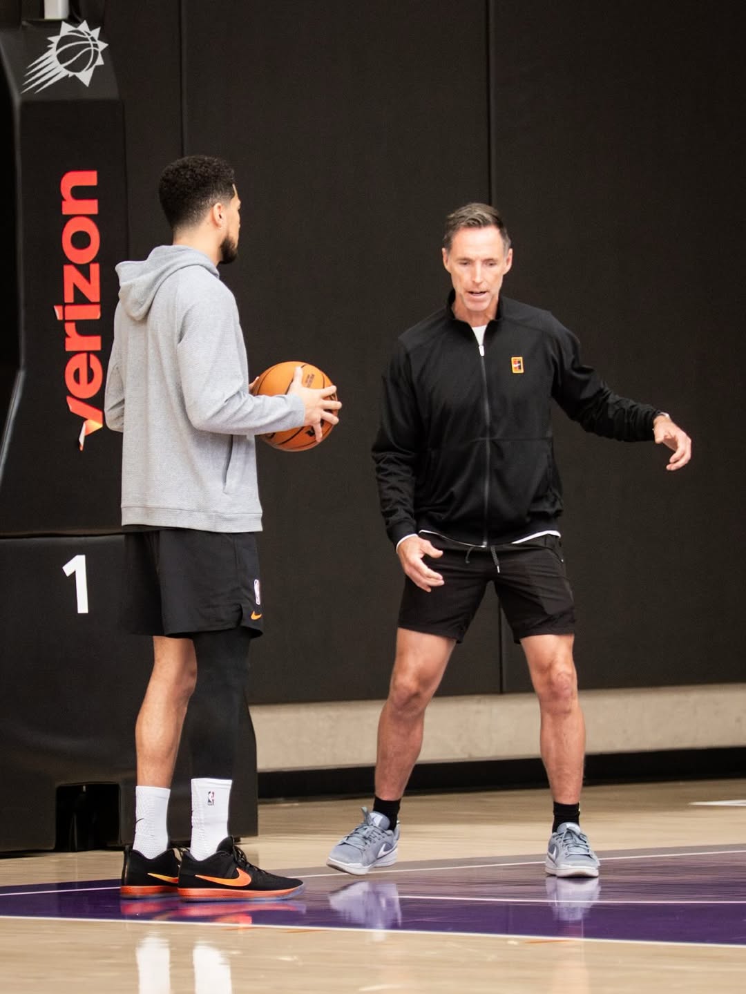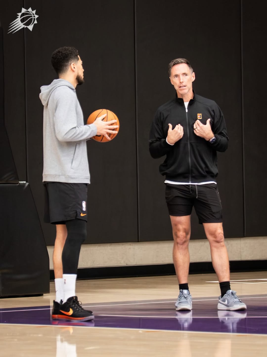 MVP回来了!太阳官方晒纳什指导布克训练的照片与球迷分享