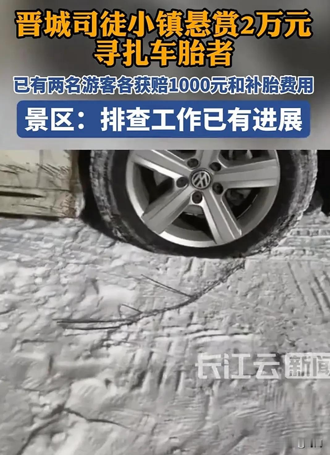 21辆汽车夜晚车胎被扎,景区自费修车并赔偿每个车主1000元,嫌疑人被抓获将严惩。事发2026年1月2日晚21点40分,山西省晋城市著名景点司徒小镇的斜对面四号停车场内,多名车主发现车胎被扎破。 一开始车主还以为是不小心路上压到钉子,可是随着越来越多车主称自己的车轮胎都被扎一个洞,经过仔细观察才发现伤口是被用利器刺破的,多达21辆汽车。车主们随后找到景区管理人员,要求赔偿损失。 1月3日中午,晋城市司徒村党支部书记和景区负责人申明,将尽快抓获作案凶手,同时马上对所有受损车辆进行免费维修,并赔偿车主1000元,花费了大概数万元。当地警方也立即展开行动,号召停车场内数百辆车提供行车监控视频,悬赏2万元缉拿扎胎者。 1月4日中午,警方就公布已将凶手抓获,为本地人,其供述酒后作案,理由就是眼红景区人流量大很赚钱产生报复心理,作案工具藏到自家花盆中已被查获,目前该男子已被刑事拘留。景区表示,虽然这个停车场免费使用,但是为了维护游客权益和景区名声,付出再多也值得。 司徒小镇21辆车轮胎被扎景区免费维修