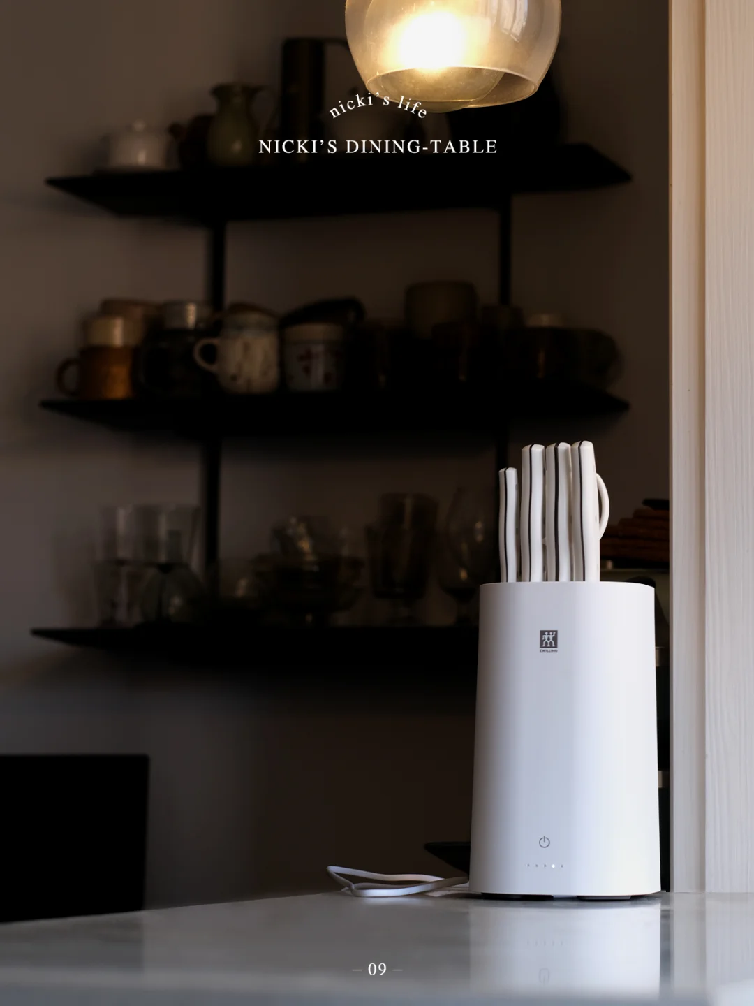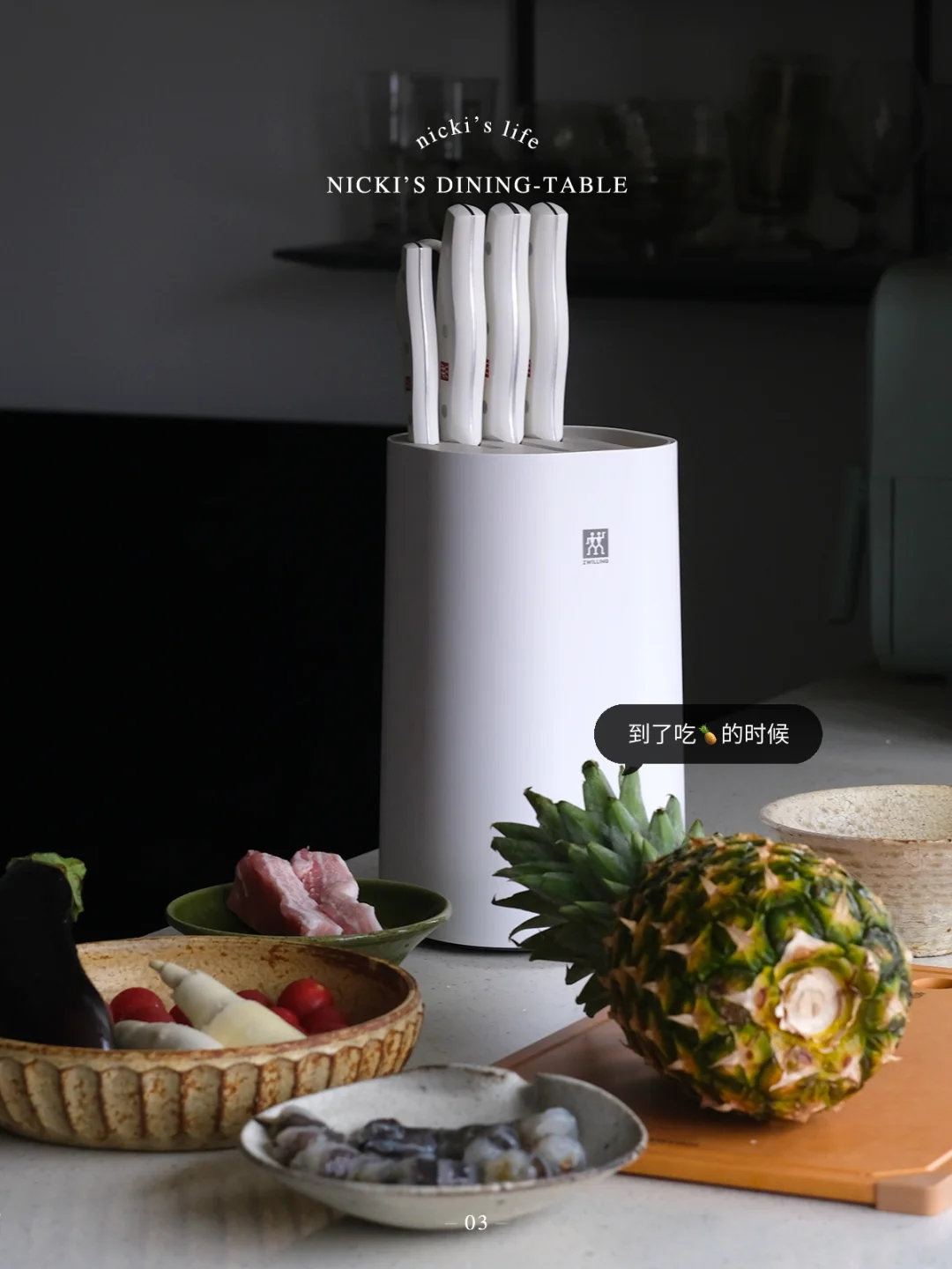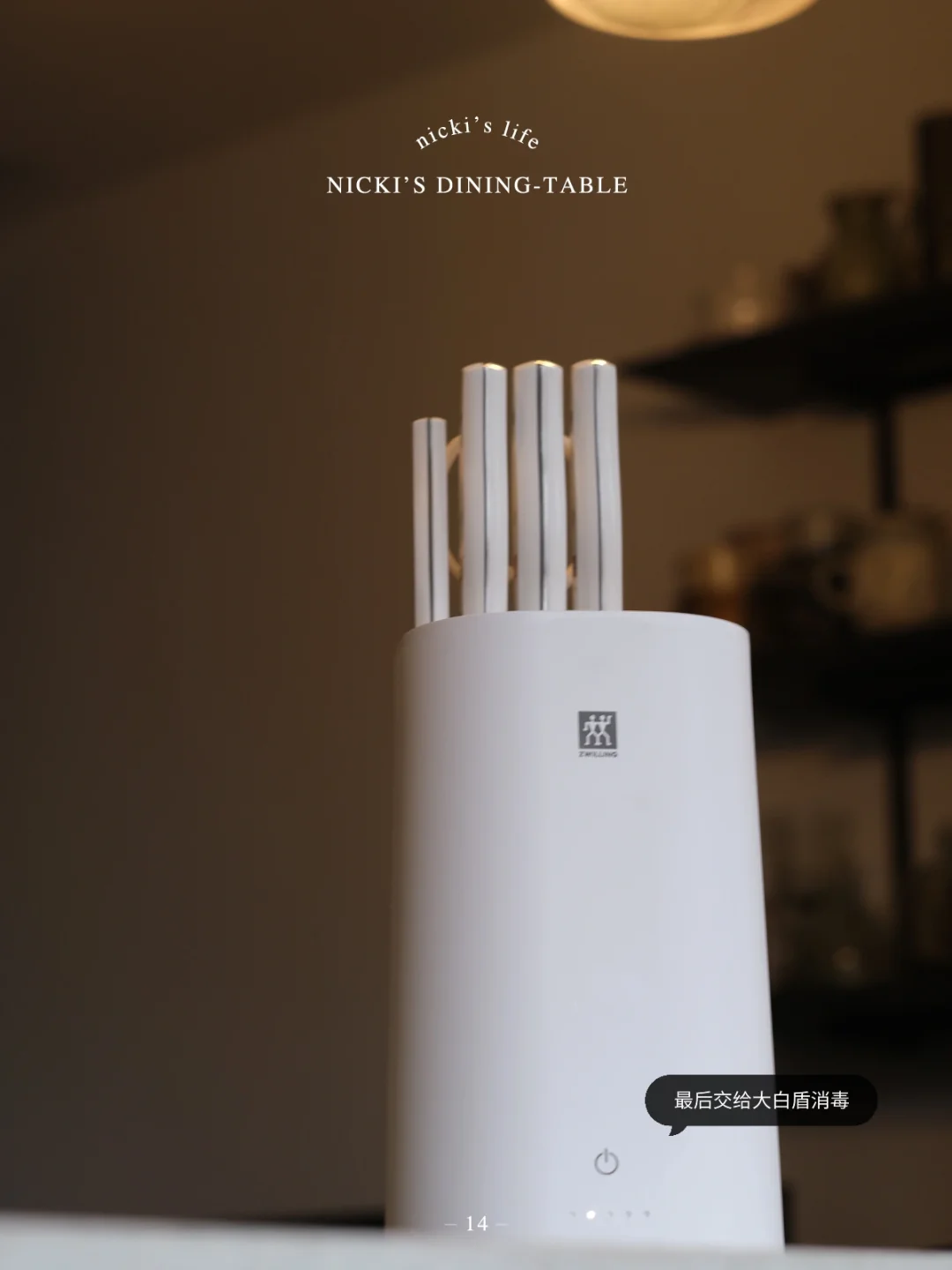 双立人刀具从小时候妈妈用,到长大自己用,感觉陪伴了我很久很久......才知道原来他们至今已有294年!这套大白盾中包含了日常所有切配需求:多用刀、中片刀、砍刀、小巧多用刀、可拆卸剪刀。珍珠白的刀架,高级简洁,刀架不但有UV紫外线除菌还有高温除菌烘干,消毒刀具的同时,也可以将筷子、勺子等放入一起消毒,节省空间的同时还是个厨房小帮手。趁着618有差不多8折的优惠,赶紧去入手。