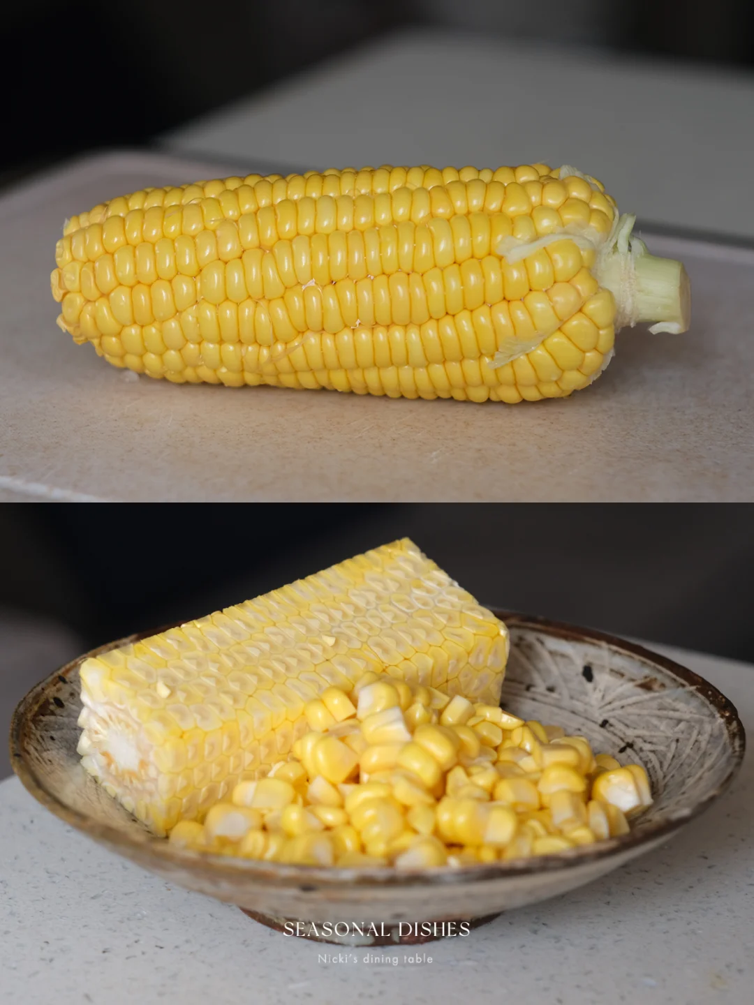 ·玉米洗净,将玉米粒切下,玉米芯保留。