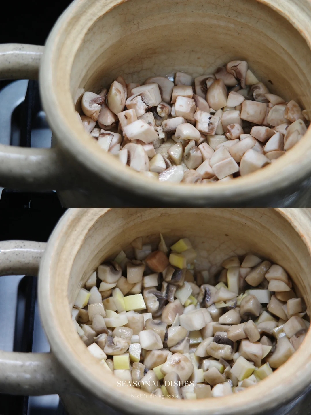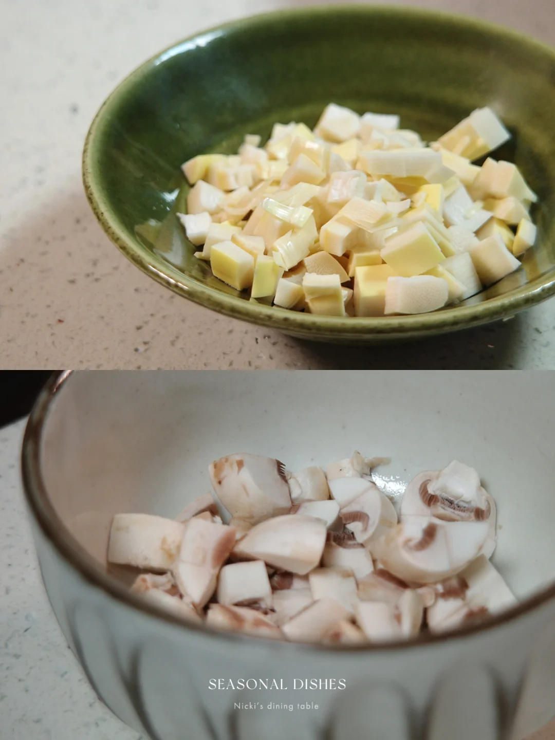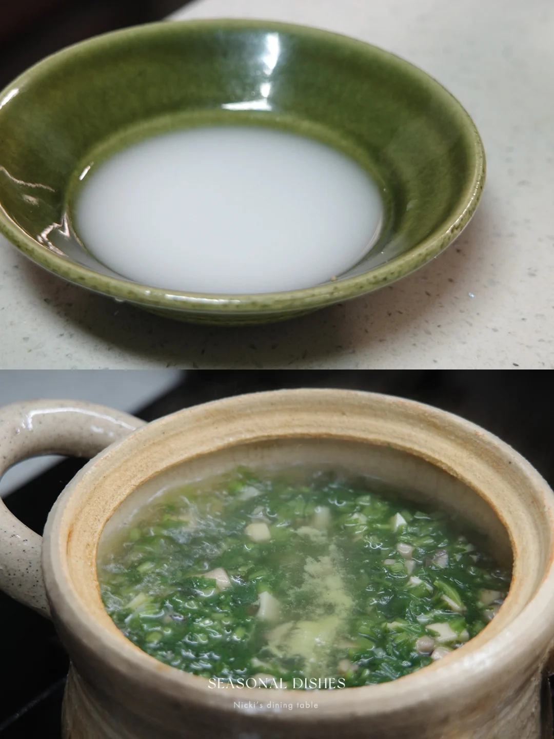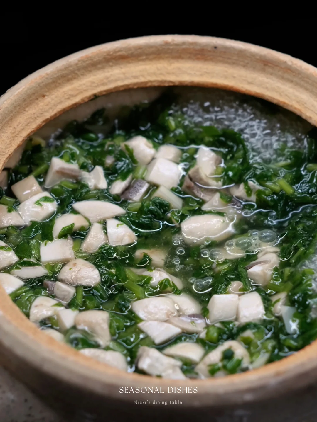 荠菜豆腐羹的出现意味着春天来了,但个人并不太喜欢荠菜。所以今天来分享这道素汤,用了蓬蒿替代荠菜,喝起来同样清爽,加了蘑菇与春笋,一个字:鲜 🍲 菜谱:蓬蒿蘑菇春笋汤 🔅做法: ·蓬蒿切末,干香菇放温水中泡发,取香菇水备用。 ·蘑菇切丁,放入锅中煸炒,炒缩水后加入笋丁,翻炒片刻,倒入香菇水。 ·煮开后,放入蓬蒿,淋上一小碗水淀粉,加适量盐调味即可。 日式餐桌|家庭料理| 器物之美|日本作家器|下饭菜|家常菜|晚餐吃什么|春季餐桌|锅物
