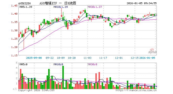 A50增强ETF(563280)业绩比较基准为MSCI中国A50互联互通人民币指数收益率,管理人为富国基金管理有限公司,基金经理为徐幼华,成立(2024-04-01)以来回报为38.63%,近一个月回报为2.86%。