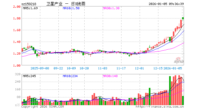 1月5日,卫星产业ETF(159218)开盘涨2.43%,报1.810元。卫星产业ETF(159218)重仓股方面,航天电子开盘涨4.60%,中国卫星涨6.37%,华测导航涨1.26%,中国卫通涨2.60%,中科星图涨1.69%,北方导航涨1.49%,北斗星通涨9.62%,四维图新涨0.11%,臻镭科技涨4.69%,新雷能涨1.38%。