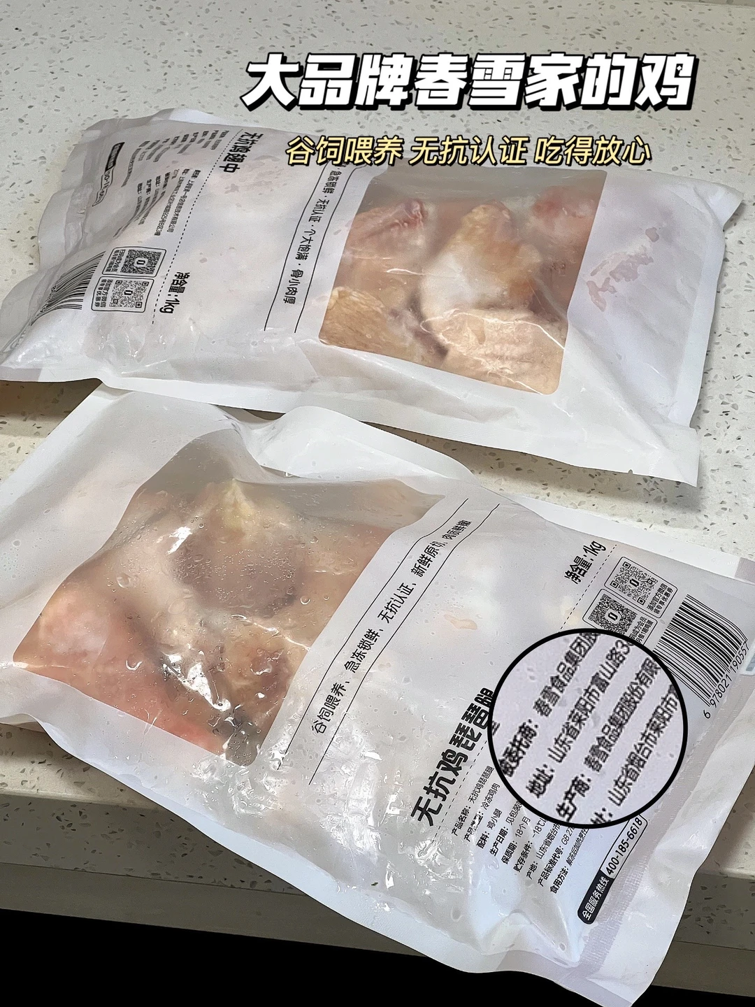 而且它还是真正的“无抗”:拥有权威无抗认证,承诺 0抗生素、0激素添加,从养殖到成品全程可溯,每个包装都有 唯一防伪码,手机一扫,这只鸡的“成长史”一目了然。