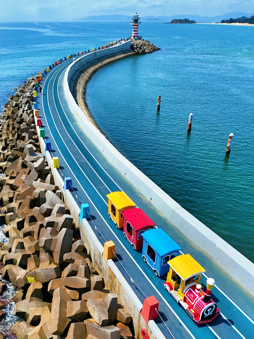 ✔️自由灯塔:消失的她的取景地,还有海上小火车🚂走到灯塔前面的一条路很美,彩色的石墩很出片,直接导航:渐见☕️咖啡厅