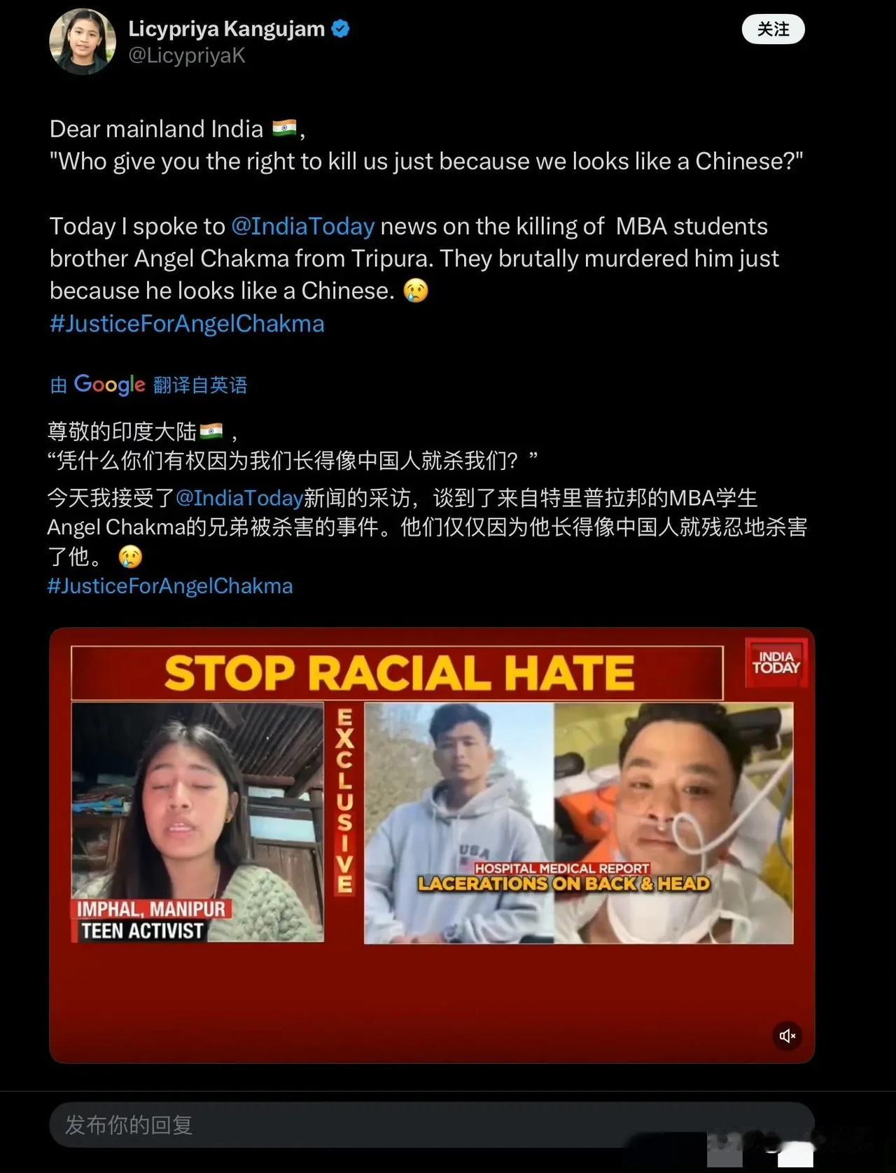 印度人还有脸问为什么中国的平台有那么多反印度的信息,先看看印度自己怎么反我们的,印度东北邦的人本来长相就很像我们,结果有个印度东北邦的小伙被印度人误认为是中国,直接给谋杀了,印度人反我们已经深入骨髓了,而且丧心病狂!而反过来中国网友只要调侃一下印度,或者有人发一下印度的夸张的案件,就会有印吹跳出来反对,说不能丑化印度,我觉得印度还需要丑化吗?你都不需要任何观点和情绪,只要把印度人做的奇葩案件发出来,那些印吹就说这是故意丑化印度,搞不懂这些印吹的逻辑,根本就不是我们丑化印度,而是印度人自己在丑化印度!