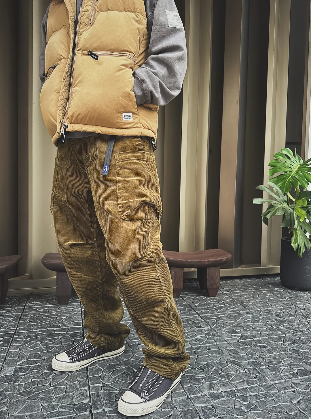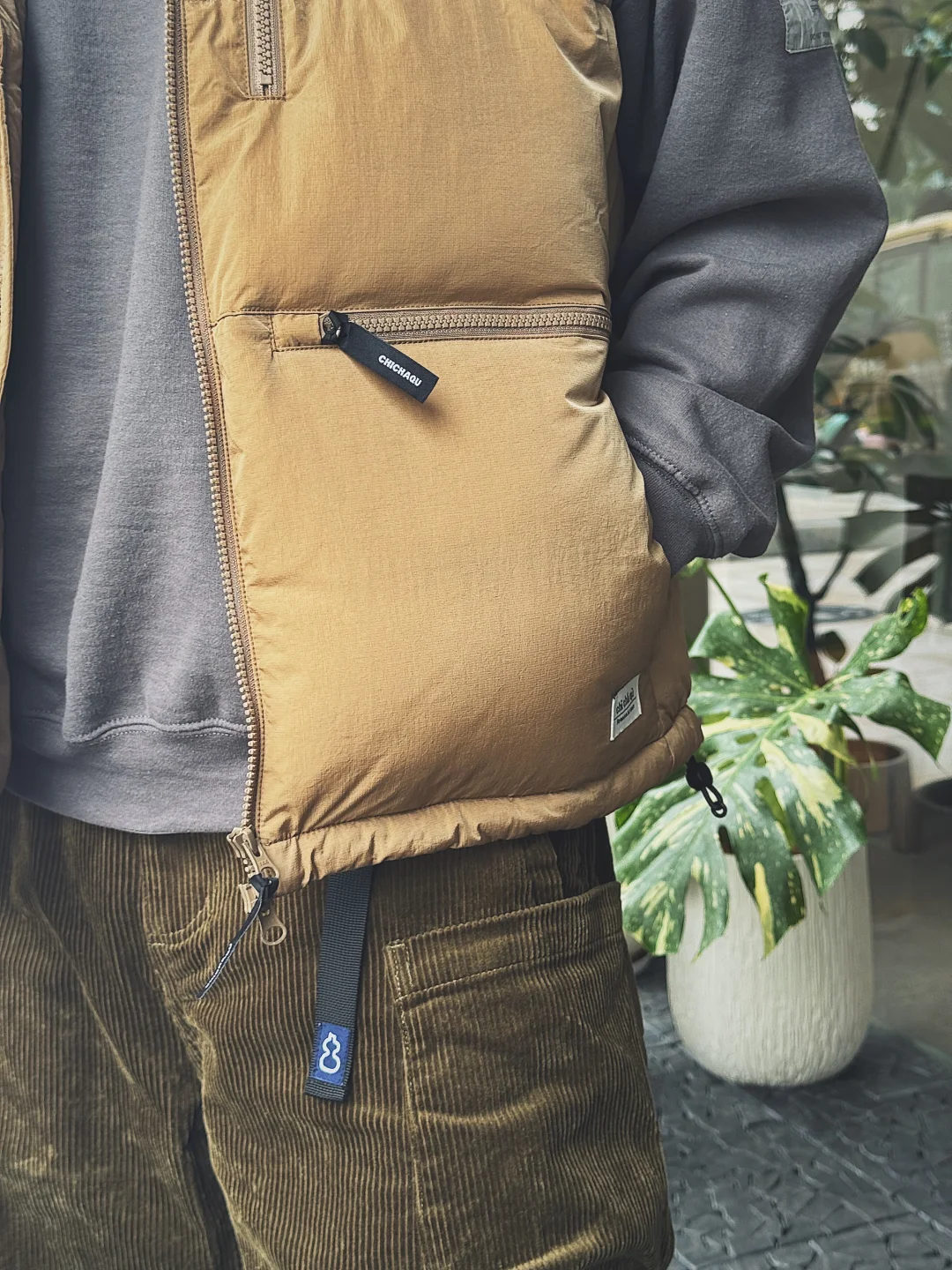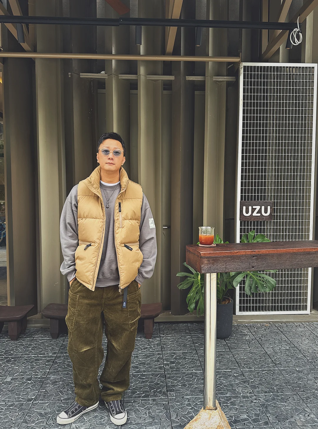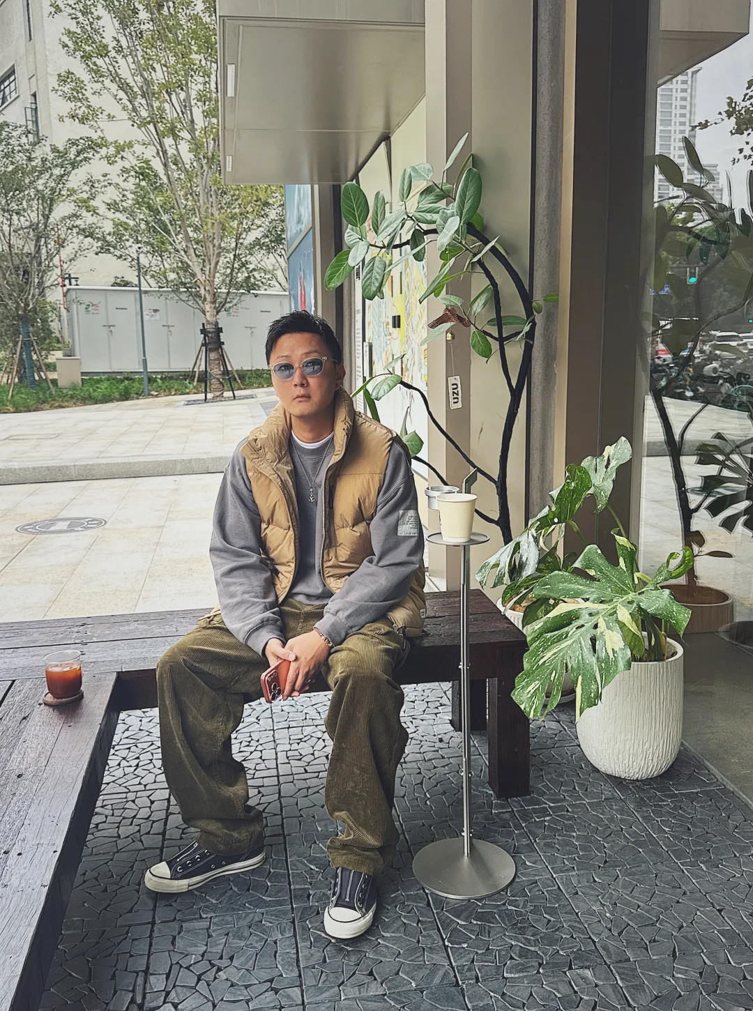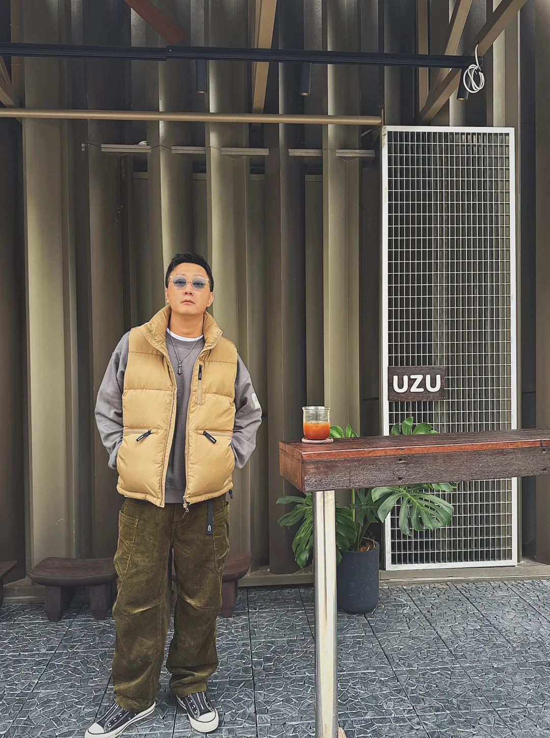 现在这季节忽冷忽热 又到了我最喜欢的羽绒马甲的主场了!下午晒晒太阳喝个咖啡放空一会太舒服了! 🧥chichaqu 👕n.hollywood 👖chichaqu 👟converse X nonnative