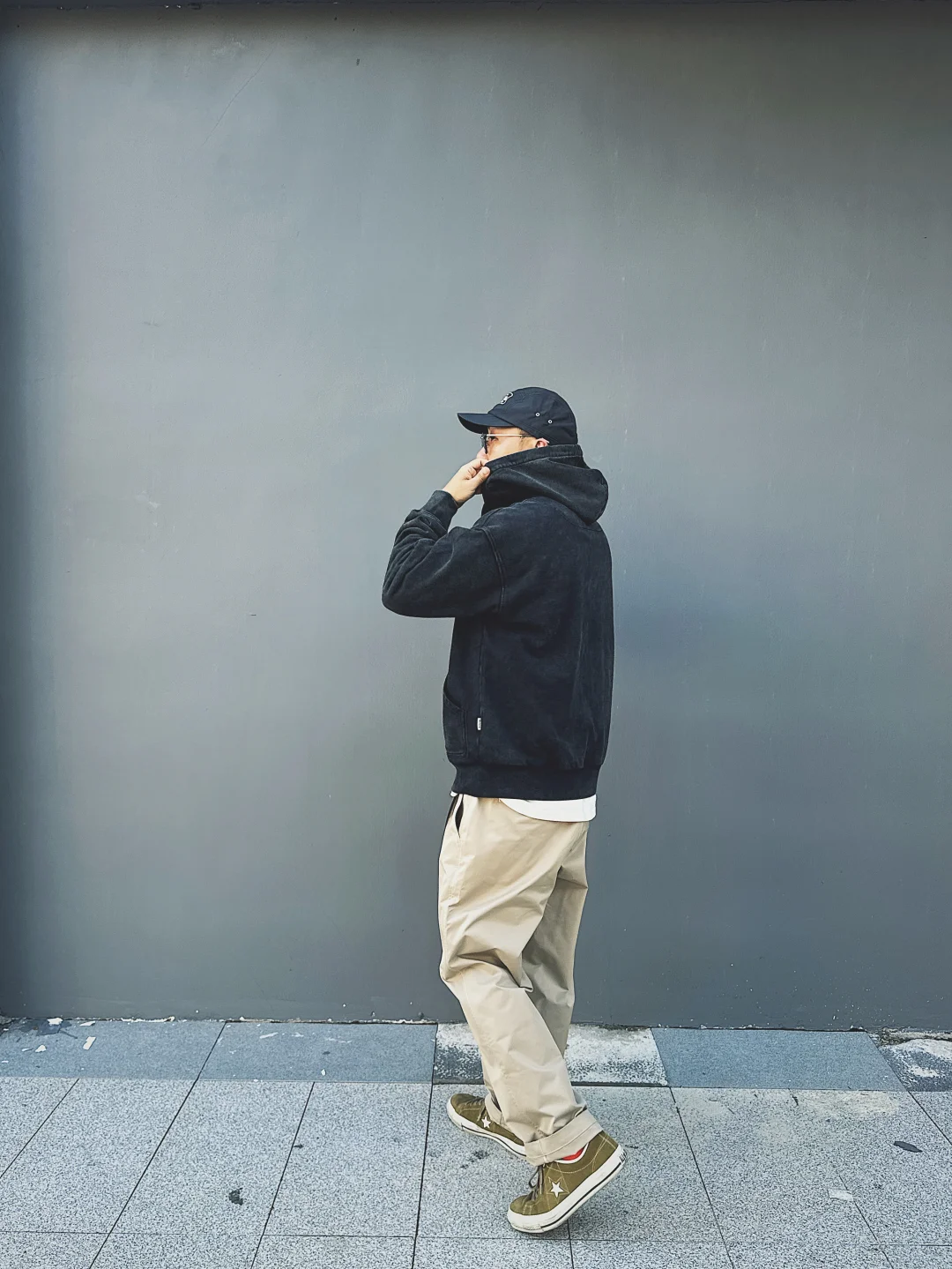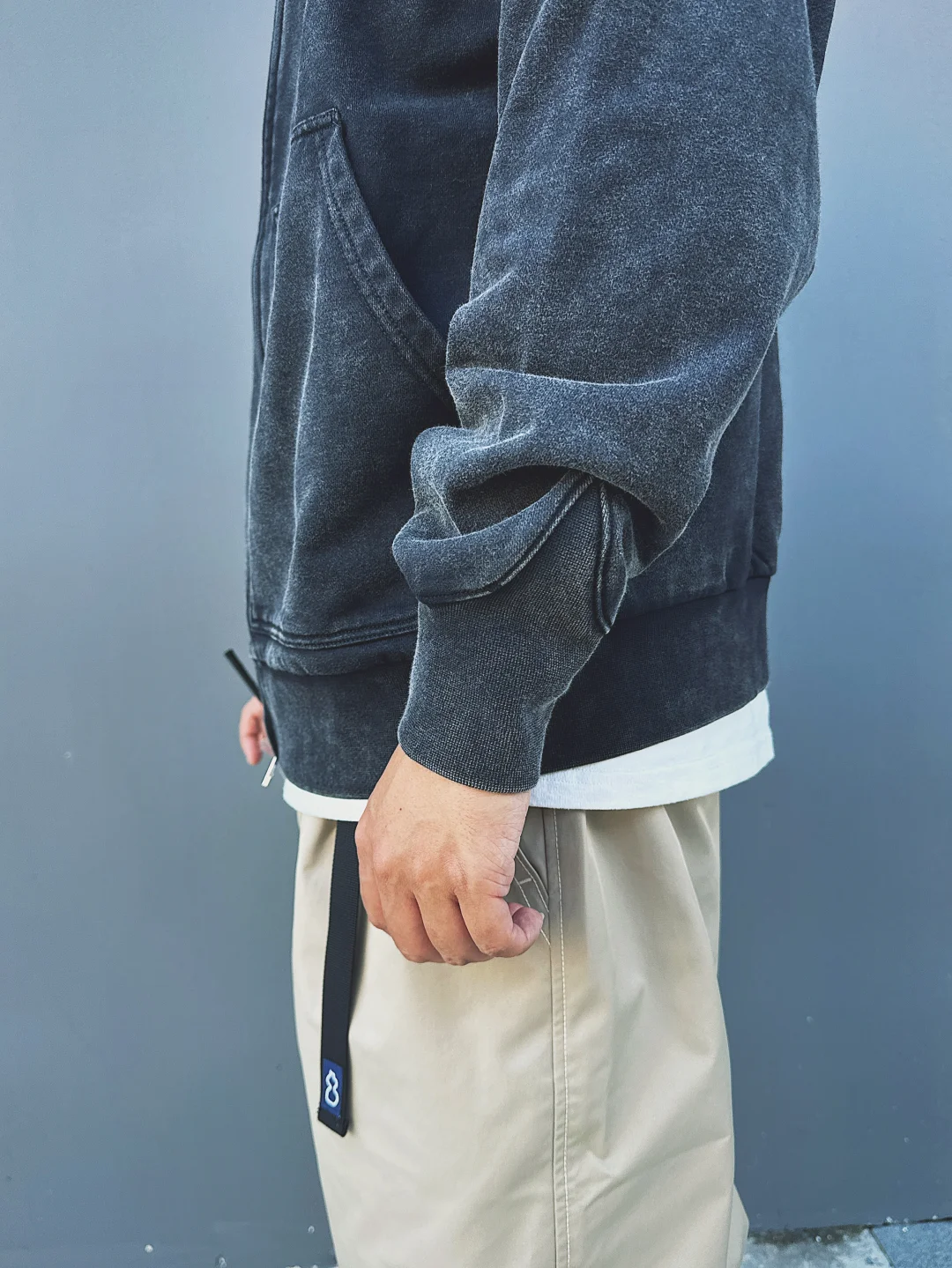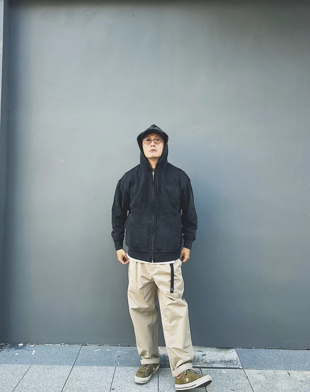 我平时对卫衣的一个选择标准就是面料克重和版型! 面料重磅的卫衣看着就比较硬挺不会软塌塌 然后版型宽松阔一点也可以完美的掩饰身材[偷笑R]这次选的这件很符合这两点 同时颜色还是复古的洗水效果落色非常自然和谐!搭配了一条卡其裤面料也是coolmax速干的 初秋的上海这个适度气候穿在身上真的非常舒适[赞R]