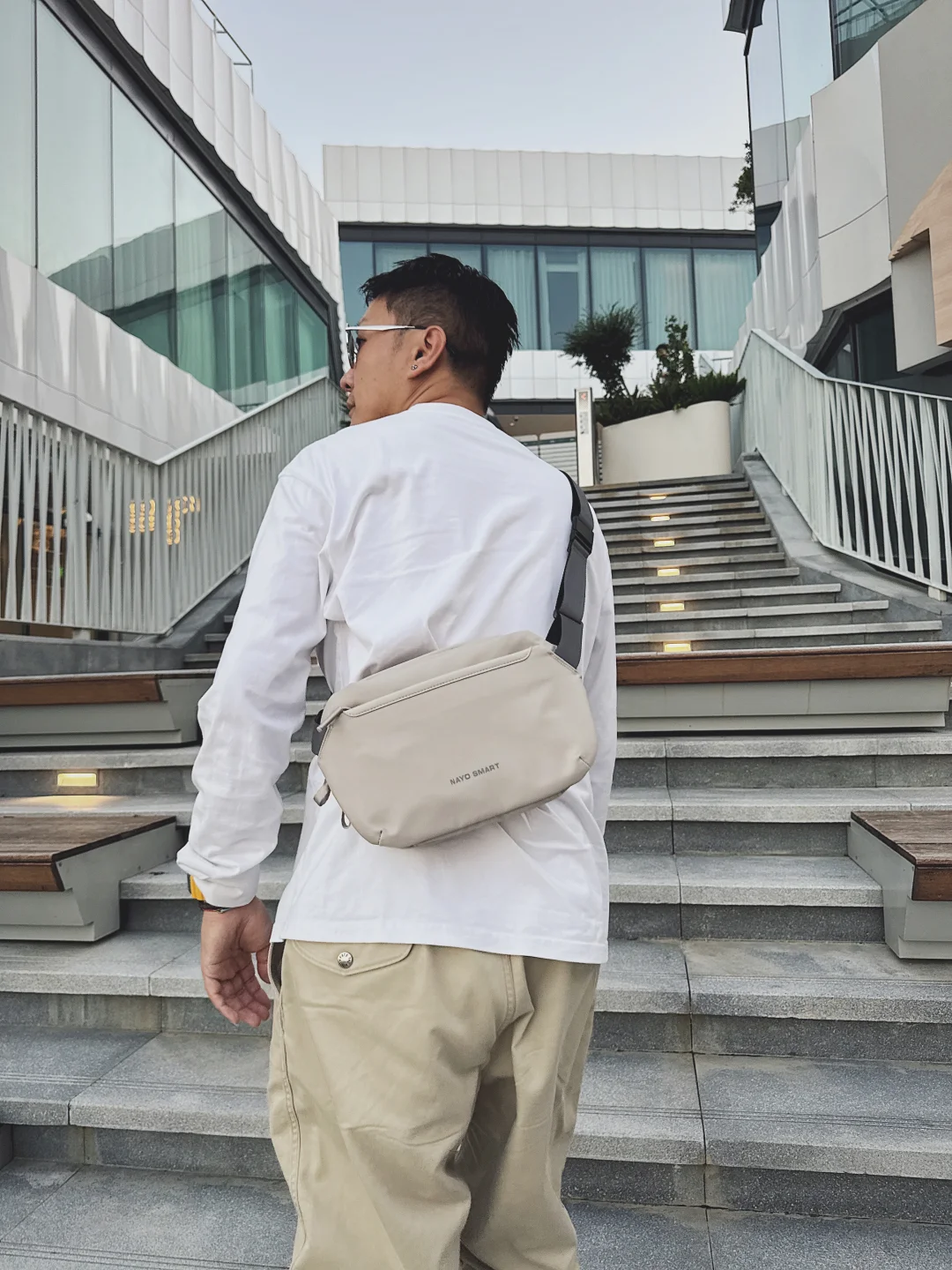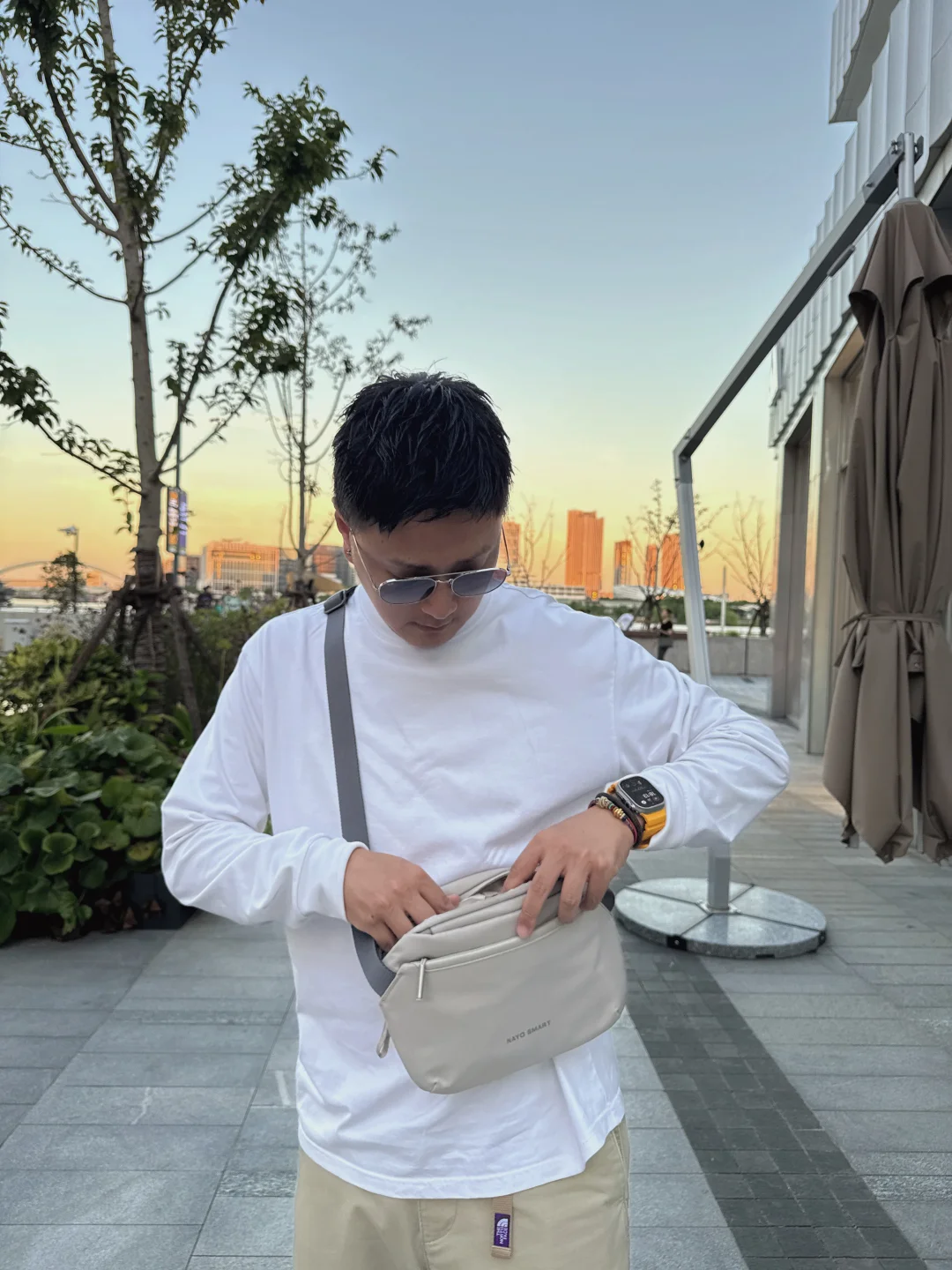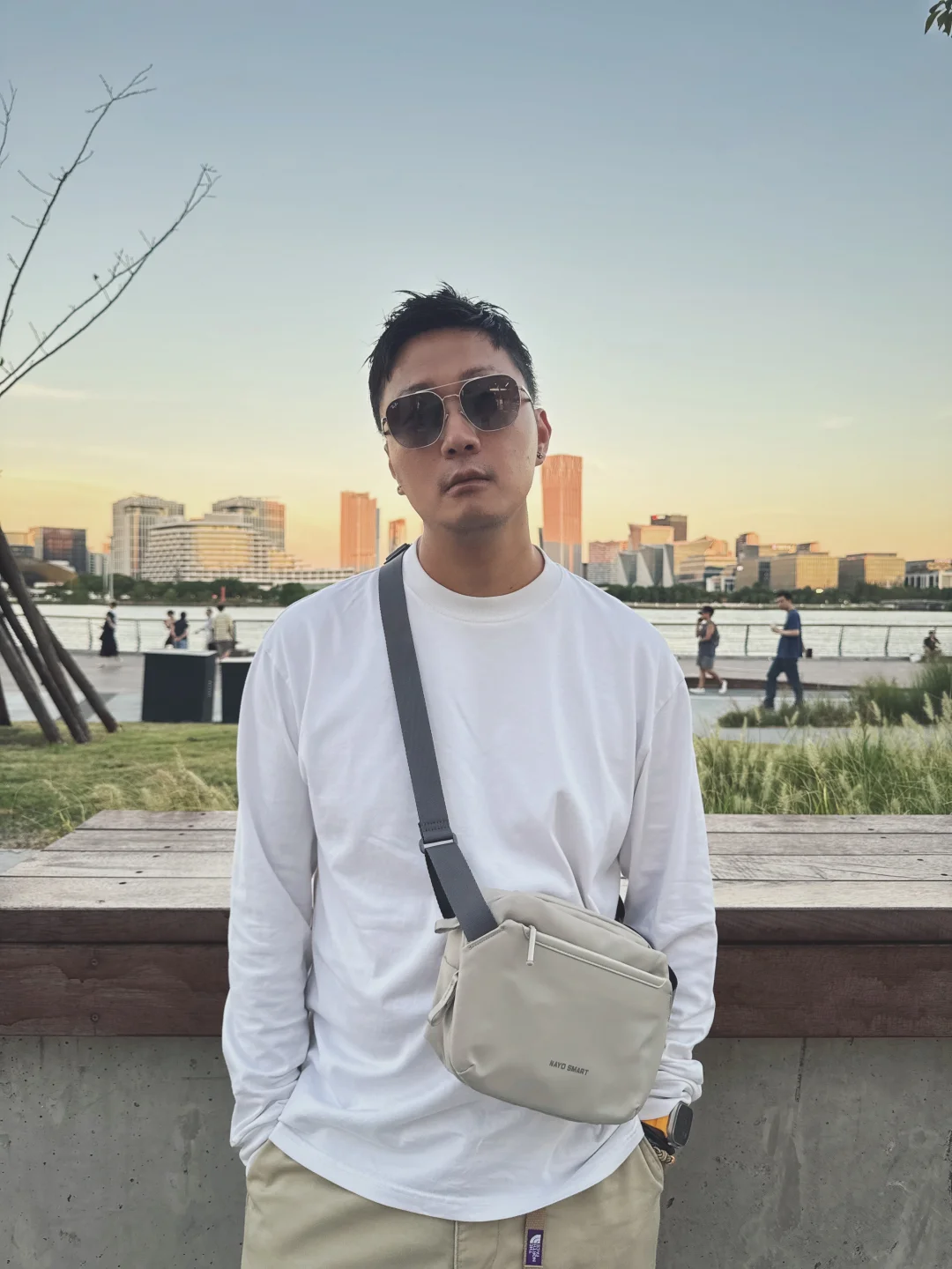 下了班来江边散个步 上海最近只有这个时间点适合在户外[笑哭R] 推荐最近使用率挺高的一个小挎包 小巧轻盈 面料防污防水 也很好搭配[赞R]