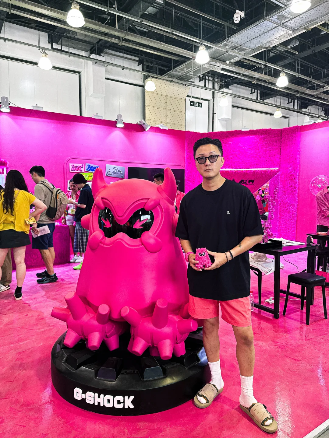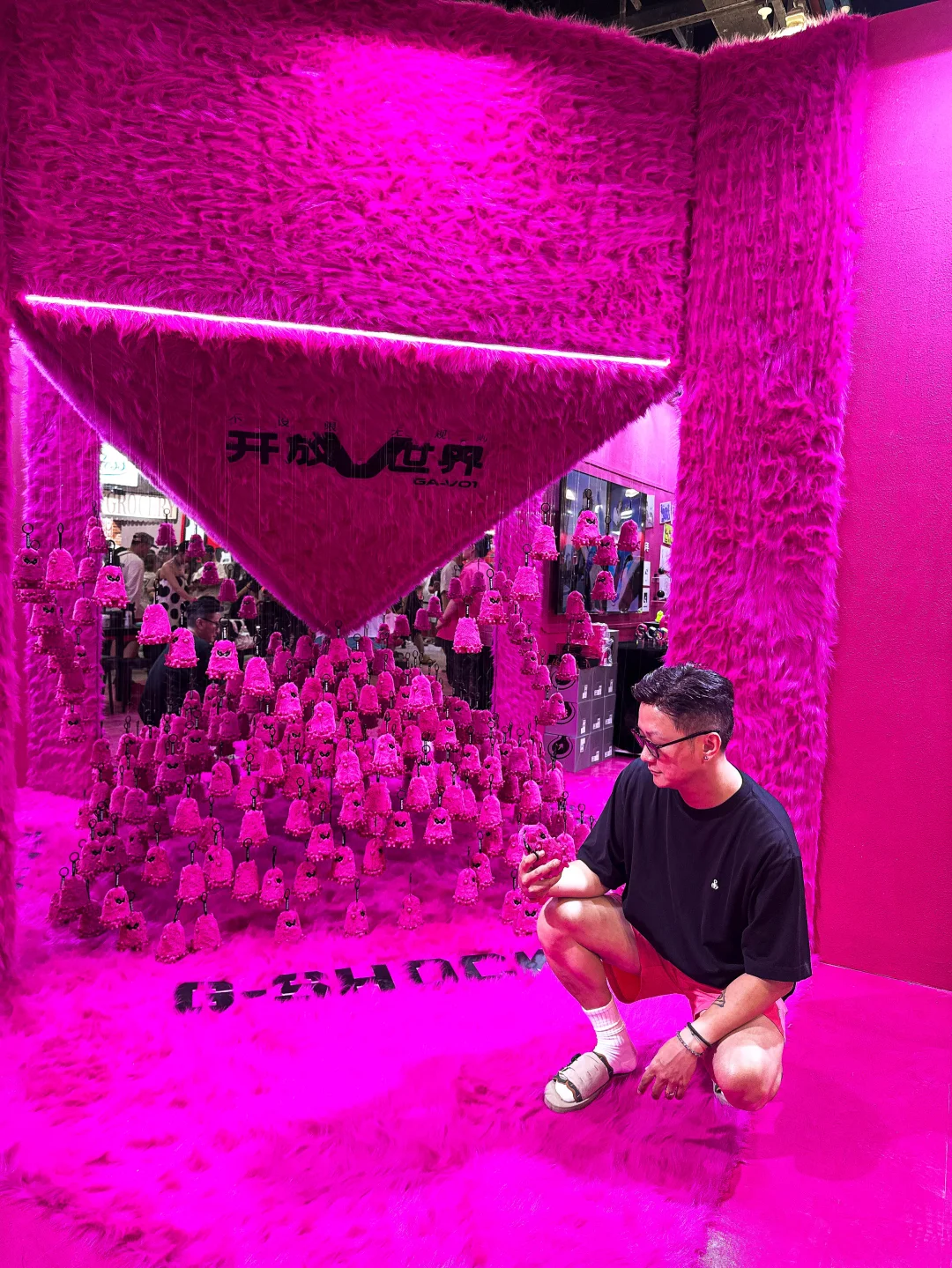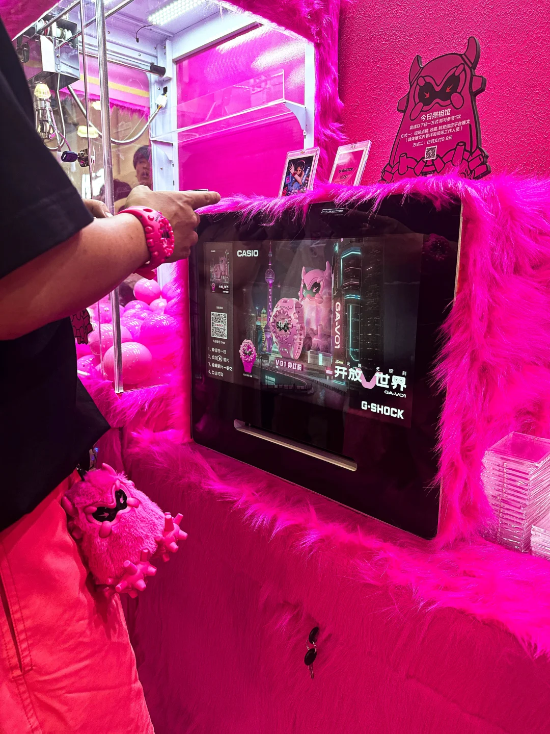 今天来逛了刚开幕的MOJO FEST 本来是想看个卡展的没想到进去直接被一个粉色的展台吸引住了[偷笑R] 原来这个是G-SHOCK的展台 这次展会上同时发布了新品「霓虹粉」GA-V01[赞R] 还有这个粉色的毛绒酷眼仔! 迫不及待上身体验了一把[偷笑R] 这次展台还有很多可以互动的项目可以体验 领走时记得去打印一张照片装进卡套留念哦[偷笑R]