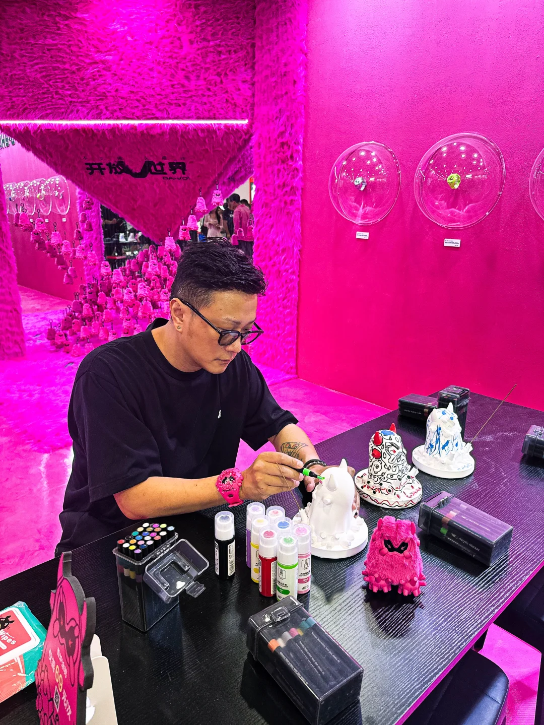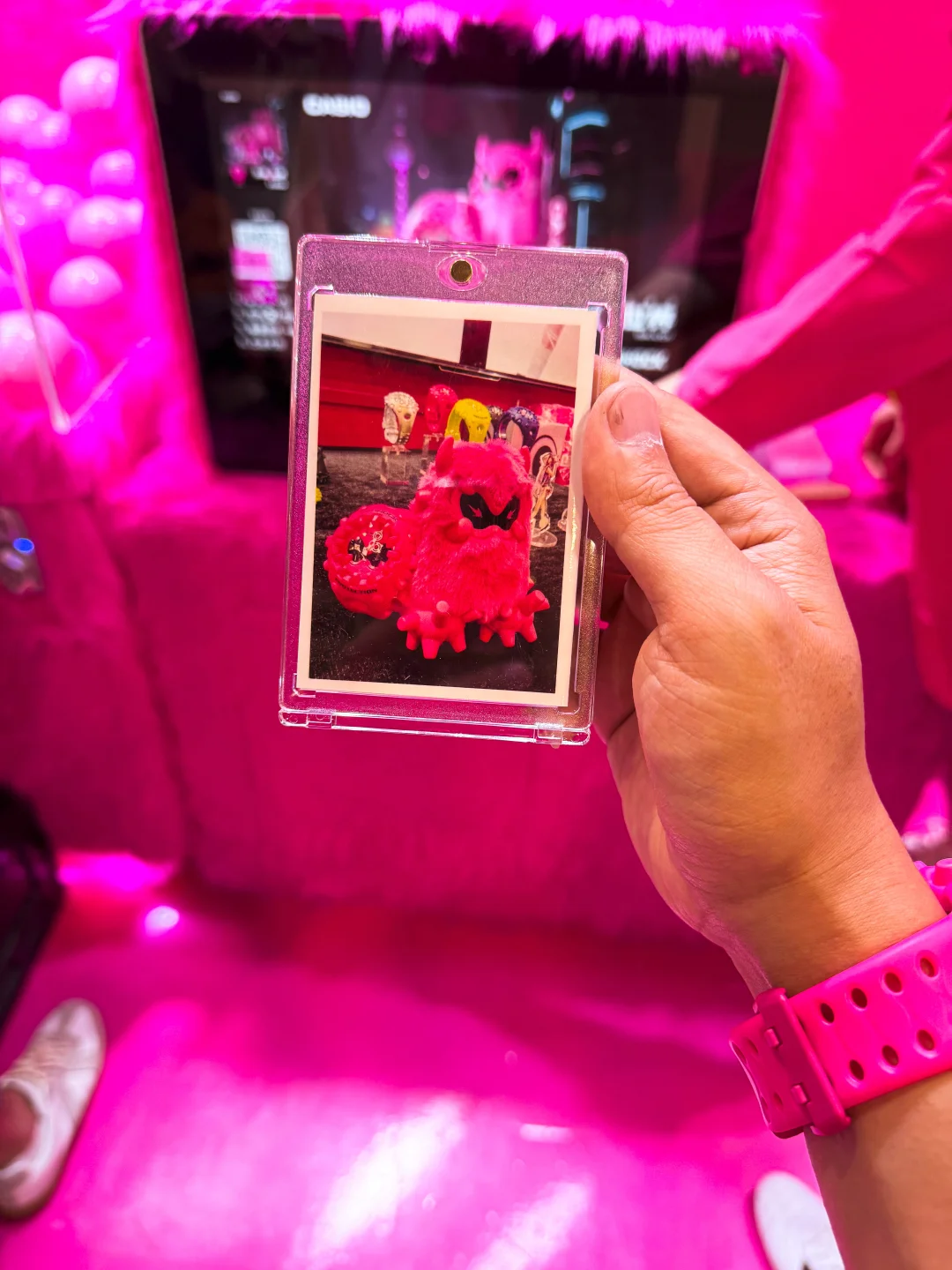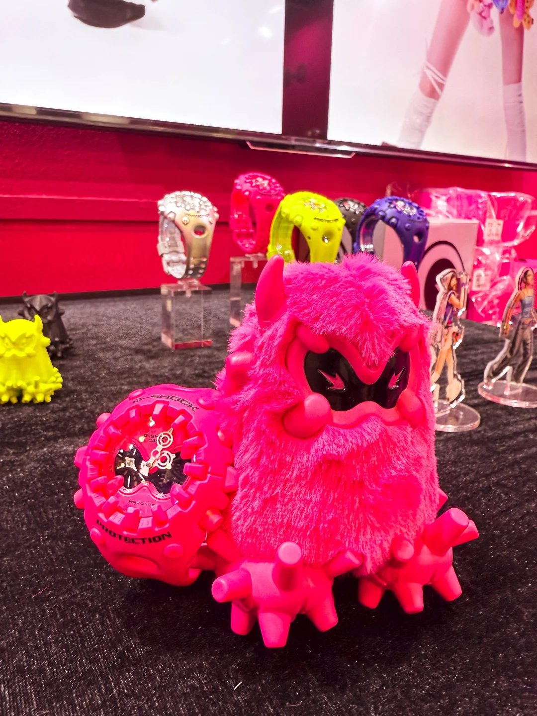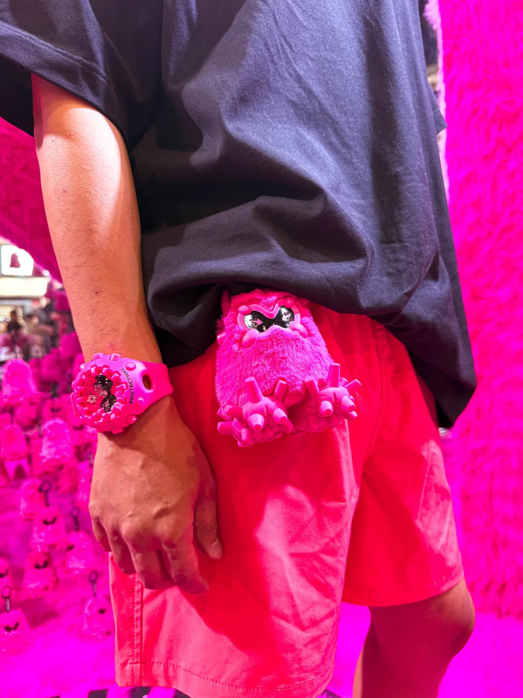 今天来逛了刚开幕的MOJO FEST 本来是想看个卡展的没想到进去直接被一个粉色的展台吸引住了[偷笑R] 原来这个是G-SHOCK的展台 这次展会上同时发布了新品「霓虹粉」GA-V01[赞R] 还有这个粉色的毛绒酷眼仔! 迫不及待上身体验了一把[偷笑R] 这次展台还有很多可以互动的项目可以体验 领走时记得去打印一张照片装进卡套留念哦[偷笑R]
