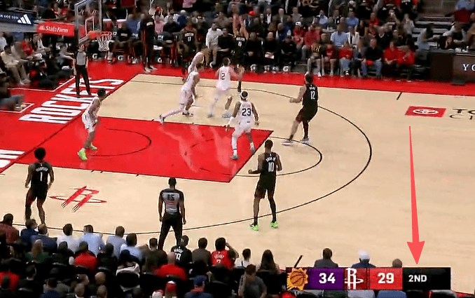 比赛的第二节,火箭太阳比赛计时器故障,计分条时间彻底消失继续比赛。