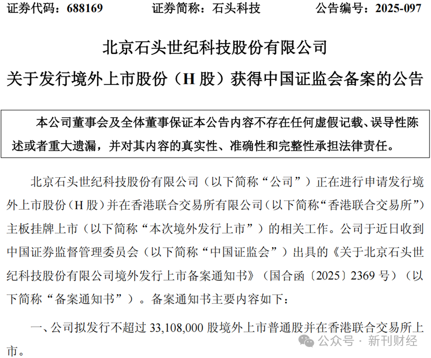 然而,在鲜花着锦的背面,资本市场的聚光灯却照向了另一个角落。2025年12月26日,石头科技宣布收到了中国证监会关于其发行境外上市股份(H股)的备案通知书,这是继2025年6月首次递表失效后,石头科技在半年内第二次向港交所发起冲锋。