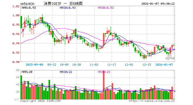 1月7日,消费30ETF(510630)开盘涨0.00%,报0.936元。消费30ETF(510630)重仓股方面,贵州茅台开盘涨0.34%,伊利股份涨0.10%,山西汾酒跌0.05%,海天味业跌0.08%,东鹏饮料跌0.31%,今世缘涨0.00%,安琪酵母跌0.07%,青岛啤酒涨0.11%,梅花生物涨0.19%,珀莱雅跌0.07%。