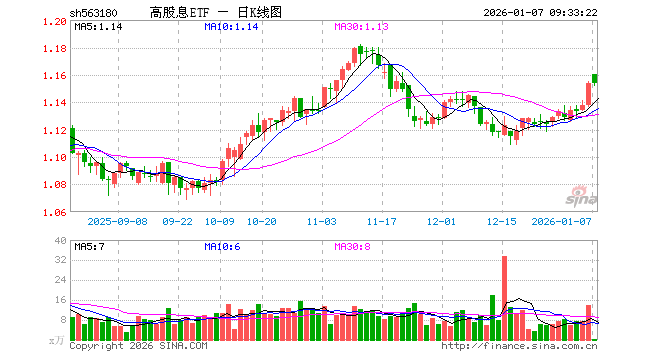 1月7日,高股息ETF(563180)开盘涨0.52%,报1.160元。高股息ETF(563180)重仓股方面,格力电器开盘涨0.00%,中国神华涨0.54%,中国石油跌1.17%,中远海控涨0.07%,中国石化跌0.65%,陕西煤业涨0.90%,大秦铁路跌0.38%,宝钢股份跌0.54%,海螺水泥涨0.31%,沪农商行涨0.22%。