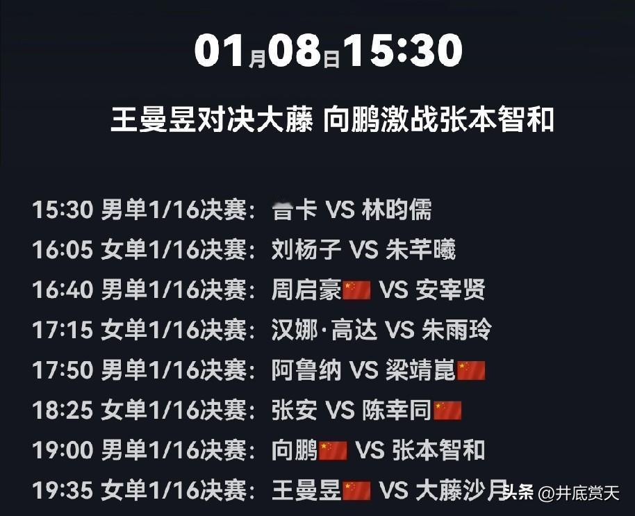 王曼昱今天(1月8日)出场,19:35迎接大藤沙月的挑战。咱看看一号种子的状态如何。 应该错不了,王曼昱还是靠谱的。孙颖莎这次没来多哈,王曼昱肩上的担子重了很多。 无意间发现王曼昱发的一张照片,很漂亮。拿来当今天的配图吧。