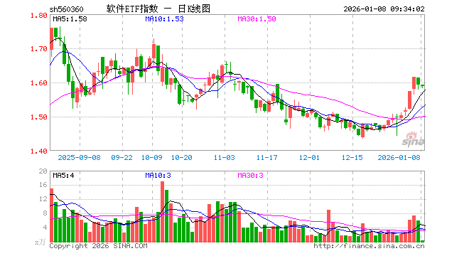 1月8日,软件ETF指数(560360)开盘跌0.06%,报1.592元。软件ETF指数(560360)重仓股方面,科大讯飞开盘涨1.34%,同花顺跌2.01%,金山办公跌0.46%,指南针跌1.64%,恒生电子跌0.42%,润和软件涨0.00%,三六零涨0.62%,拓维信息涨1.42%,用友网络涨1.77%。